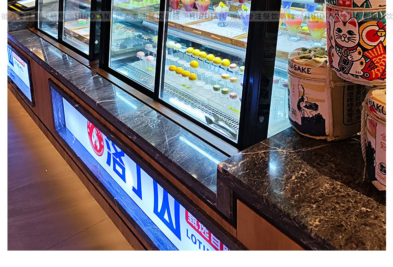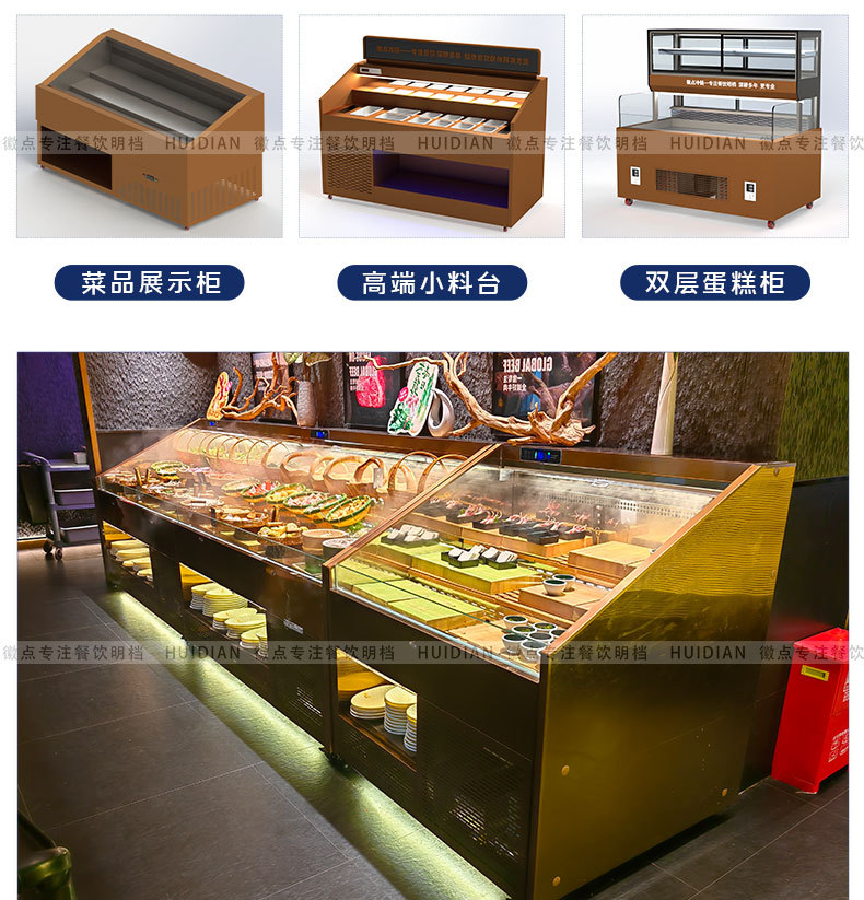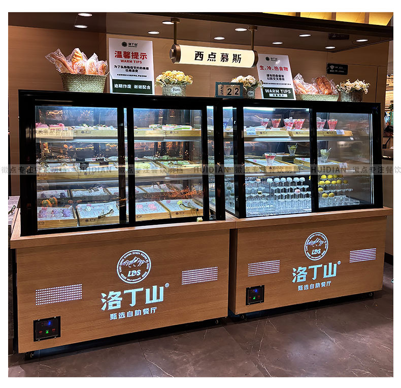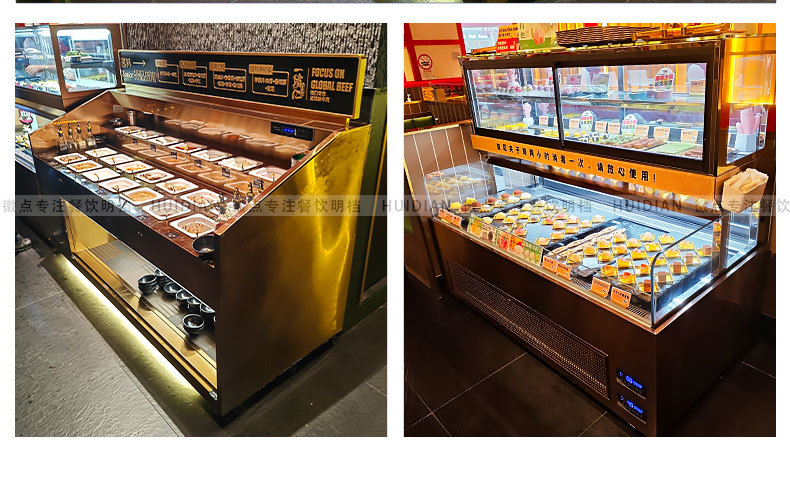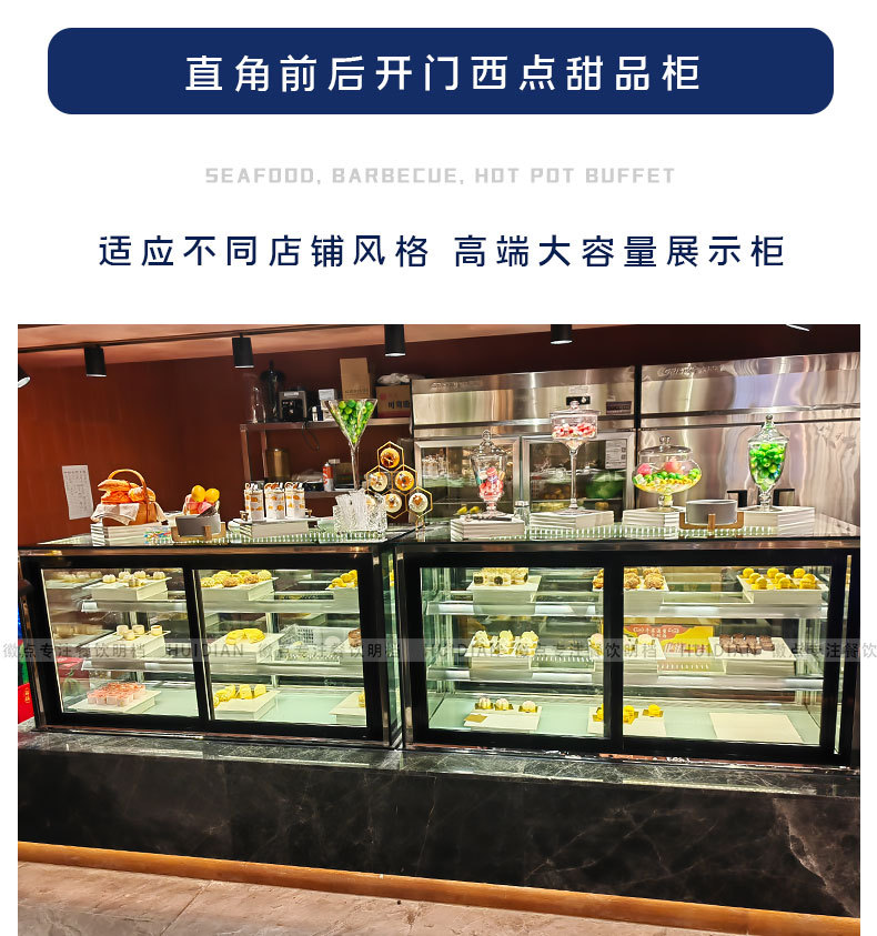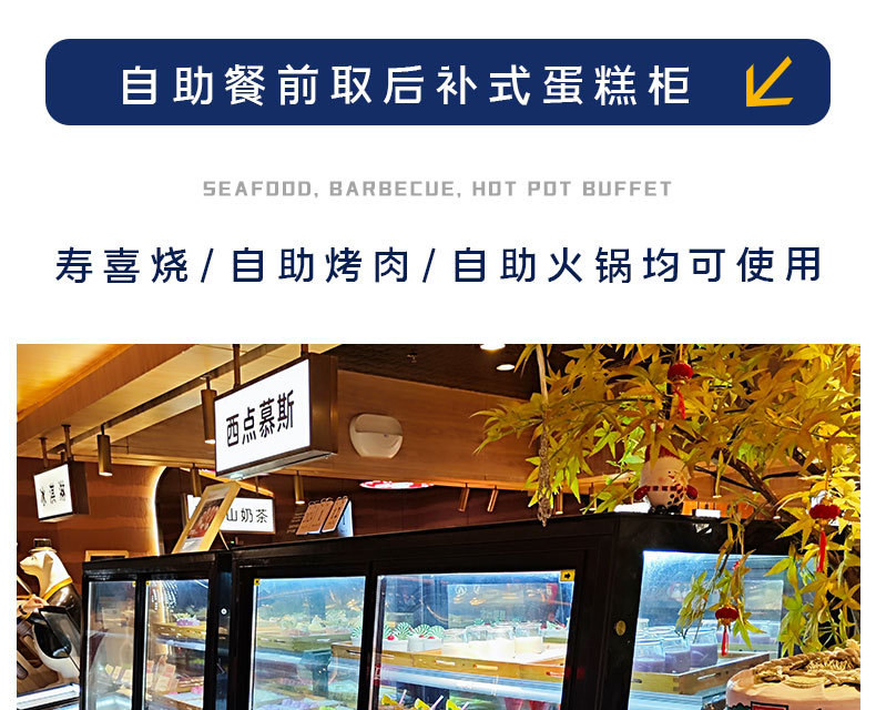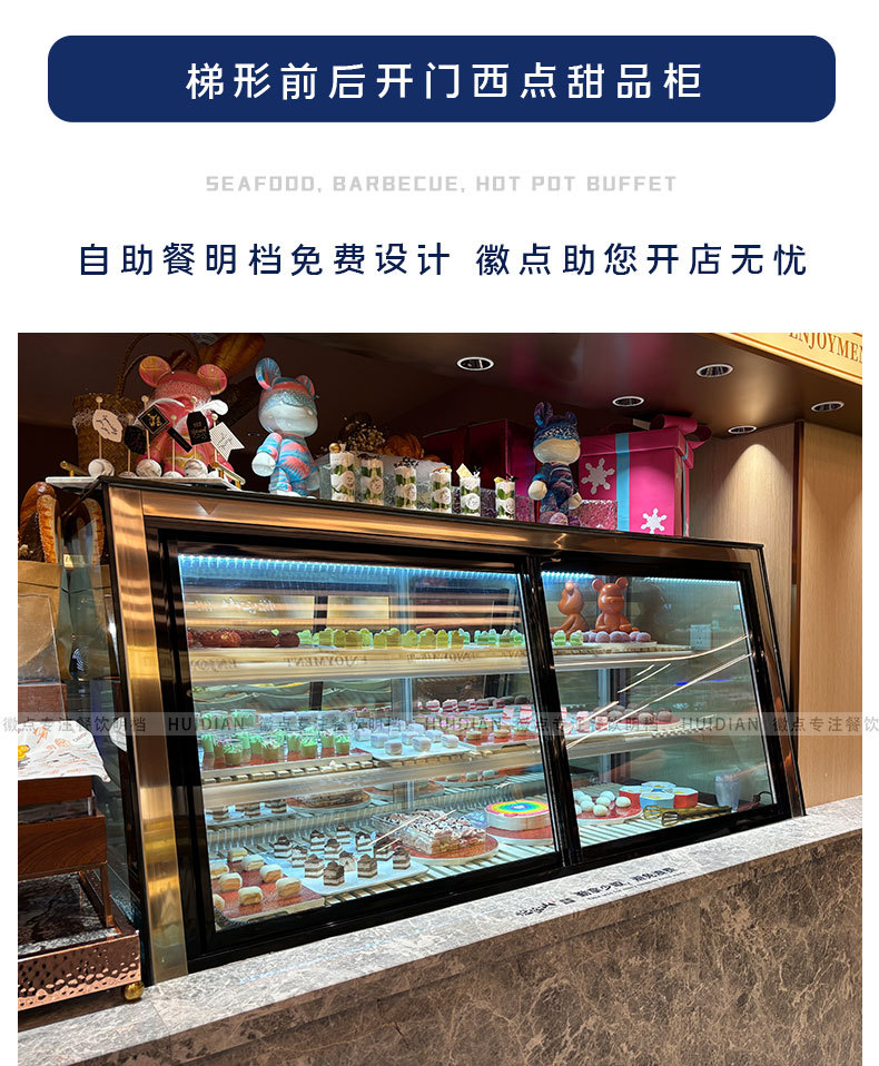 Restaurante de pastel, restaurante de hotpot de barbacoa de buffet, mostrador de puntos occidentales, refrigerador, gabinete de mousse de doble capa, sushiyaki