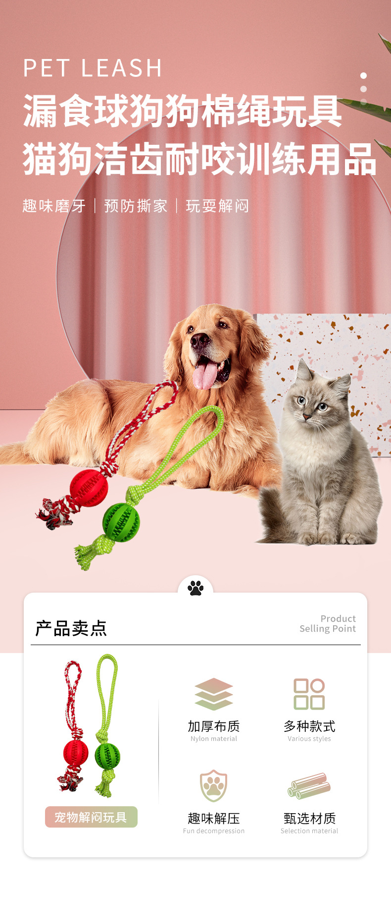 | Número de artículo | Juguetes de cuerda de algodón para perros con bolas de fuga de Alimentos |