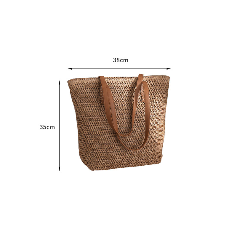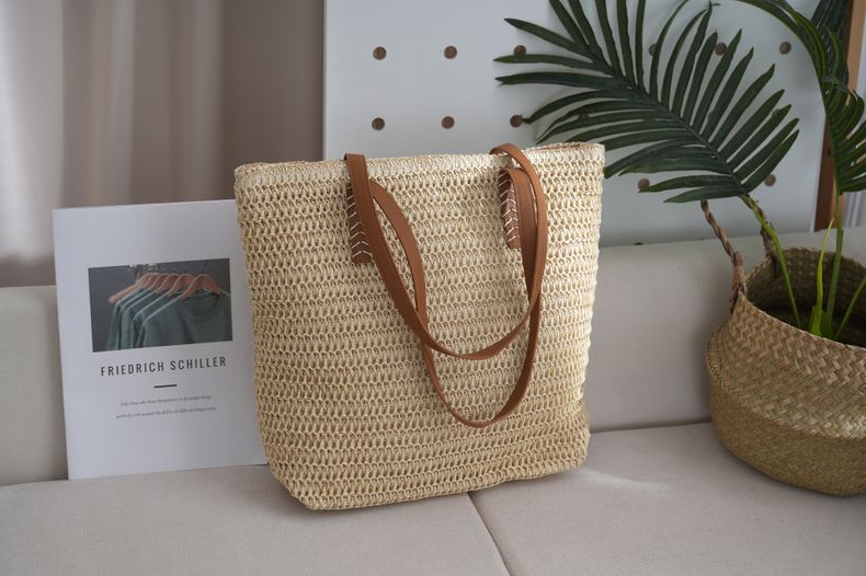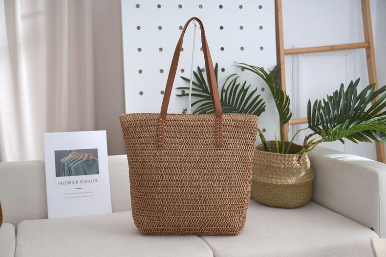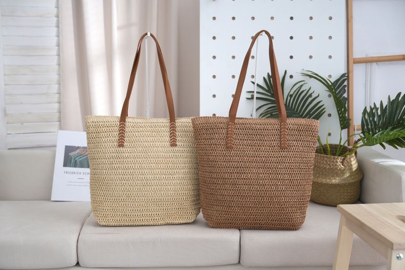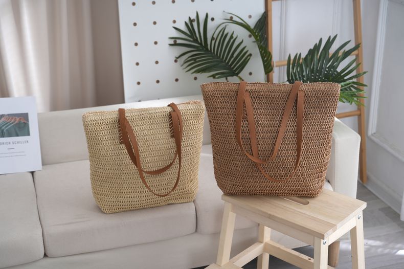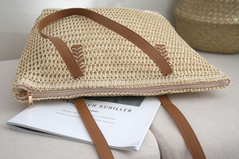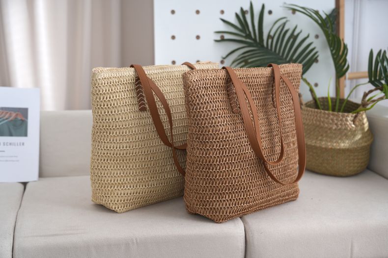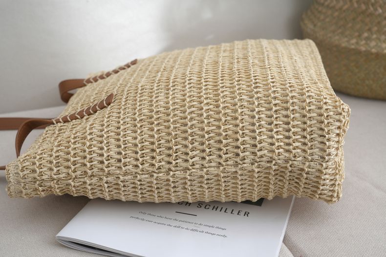 Bolsa de paja estilo de vacaciones bolsa tejida de verano modelo femenino 2025 de gran capacidad para ir al trabajo y a la escuela bolsa de viaje al por mayor