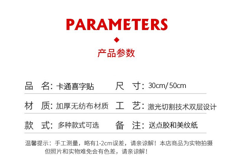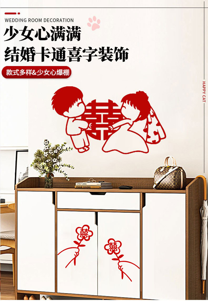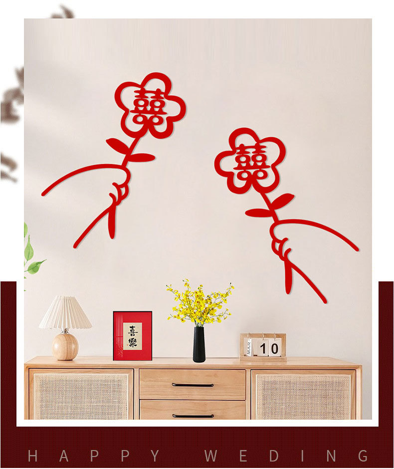 Decoración de la boda Xi pegatinas de personajes suministros de boda tela no tejida Xi personaje decoración de la boda sala de estar ventana flor letra grande