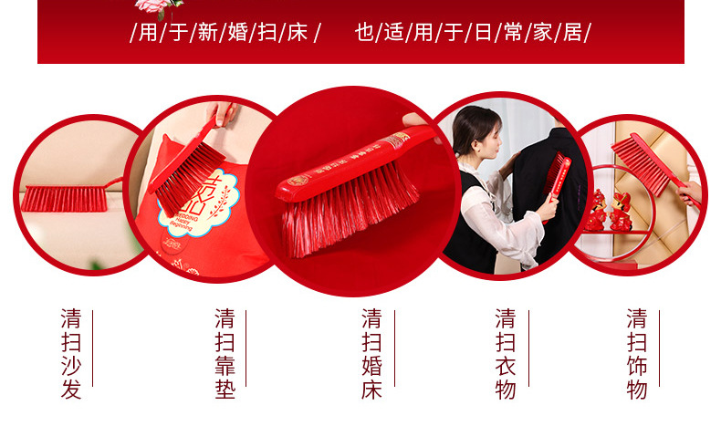 Artículos para bodas, escoba roja para barrer la cama, herramientas para la habitación nupcial, eliminación de polvo, celebración de bodas, ropa de cama para el dote de la novia