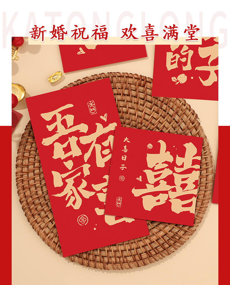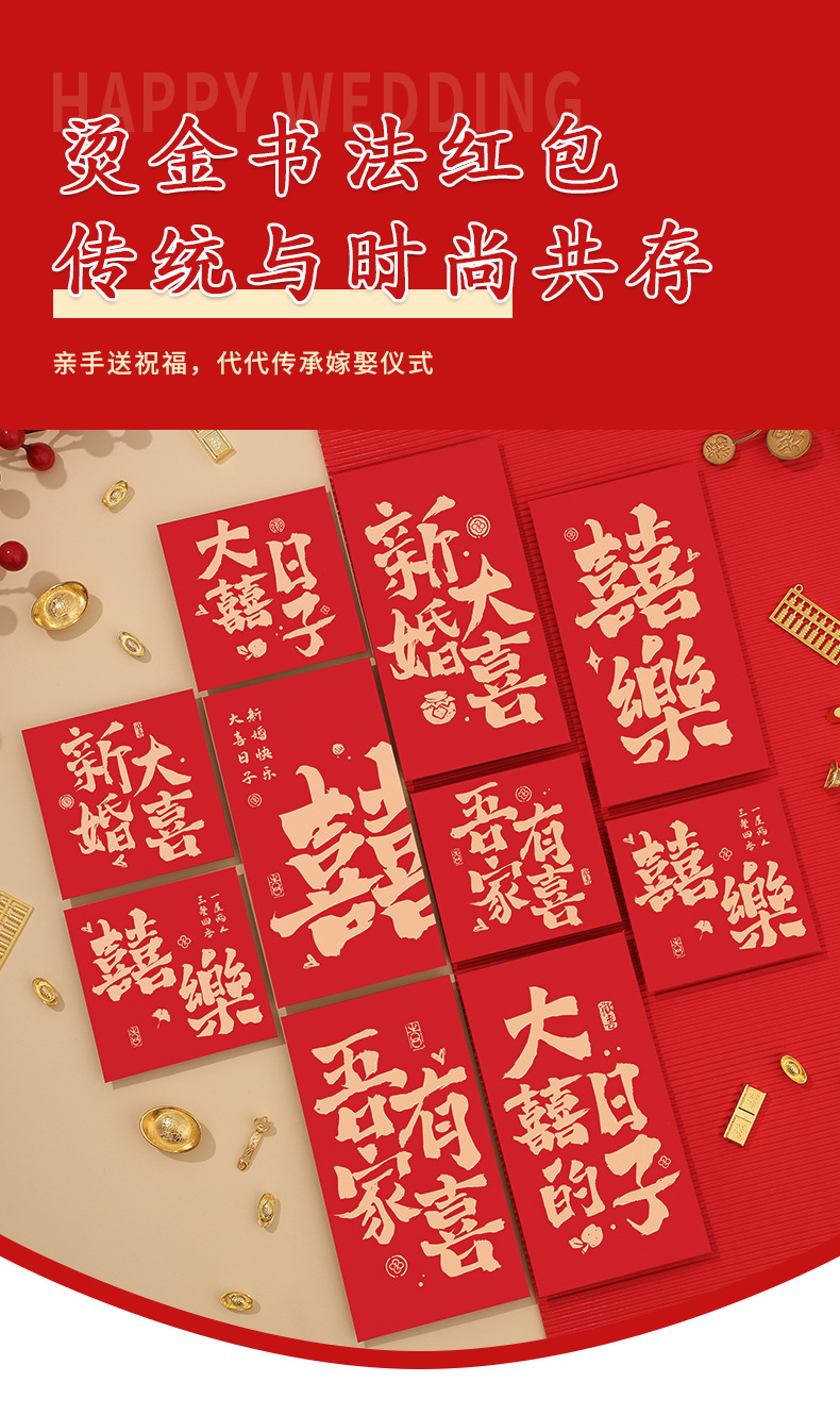 Casarse con la caligrafía china sobre rojo de boda 2025 nuevo estampado de oro boda con los miembros cambiando el sobre de lápiz labial creativo Li es sello