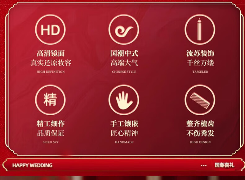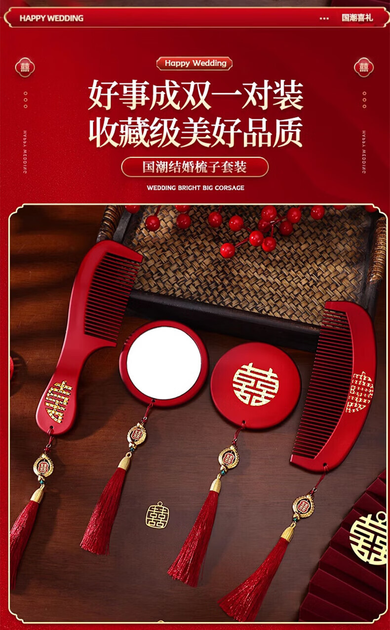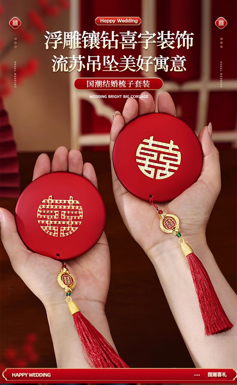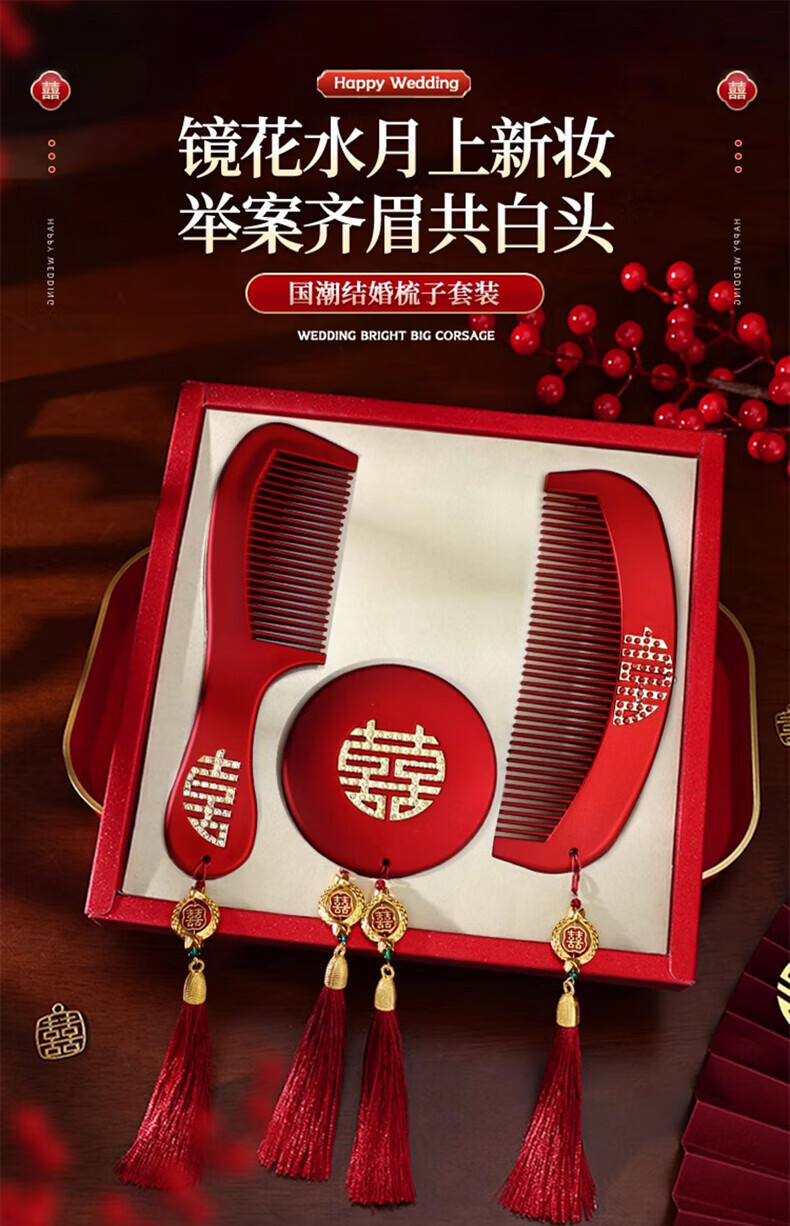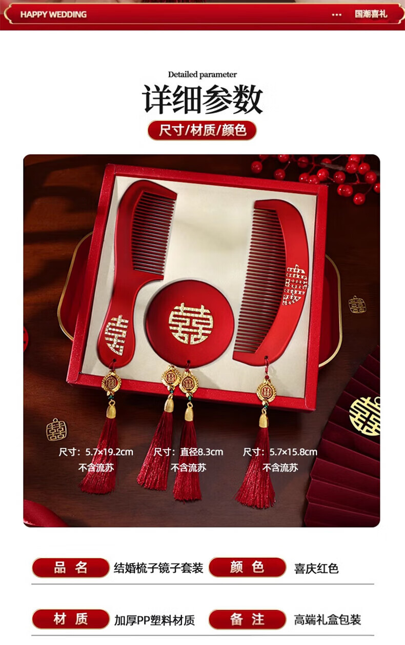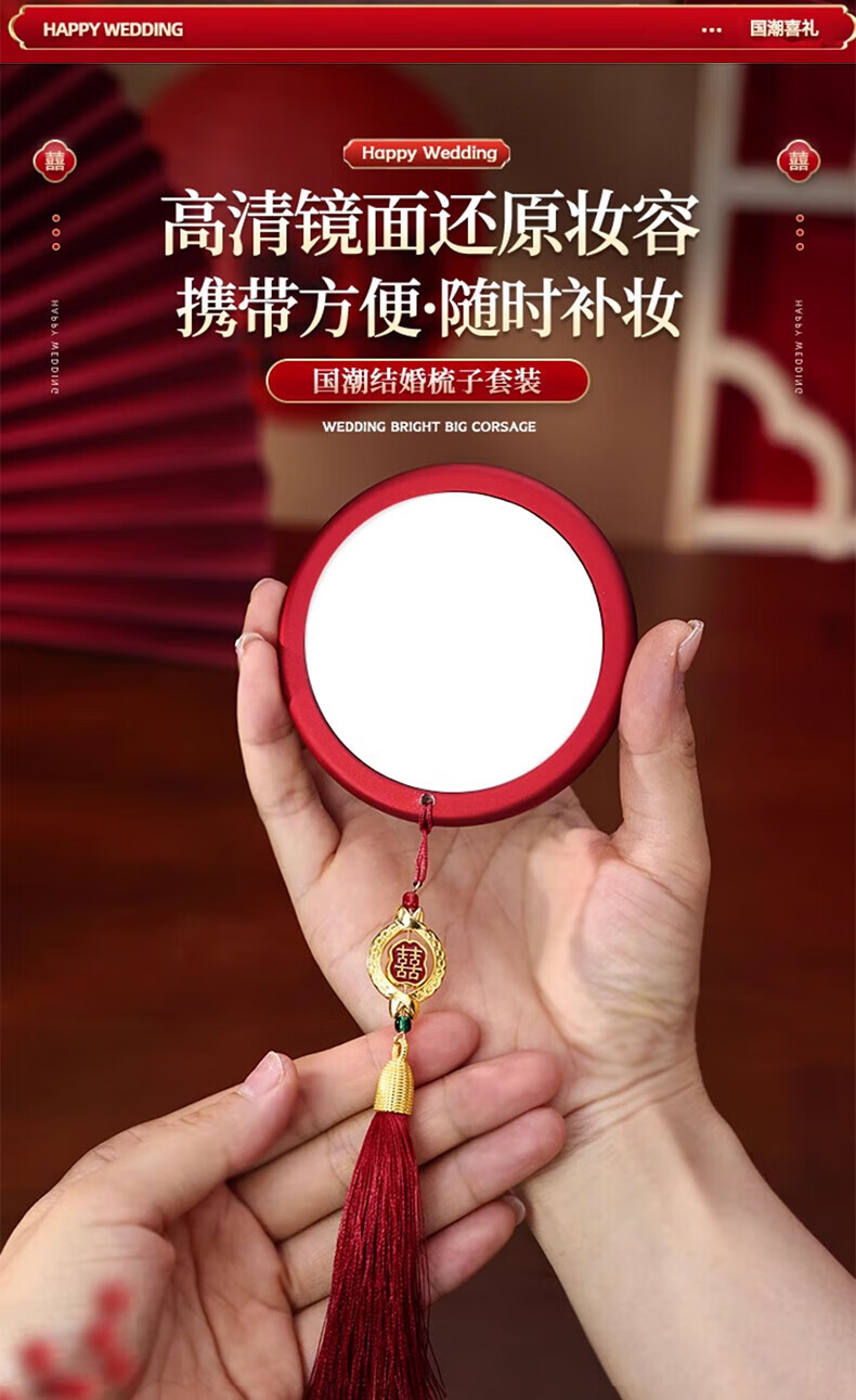 Espejo de casamiento peinado un par de conjuntos de bodas conjuntos de regalo de boda rojo para la novia suministros de boda espejo completo