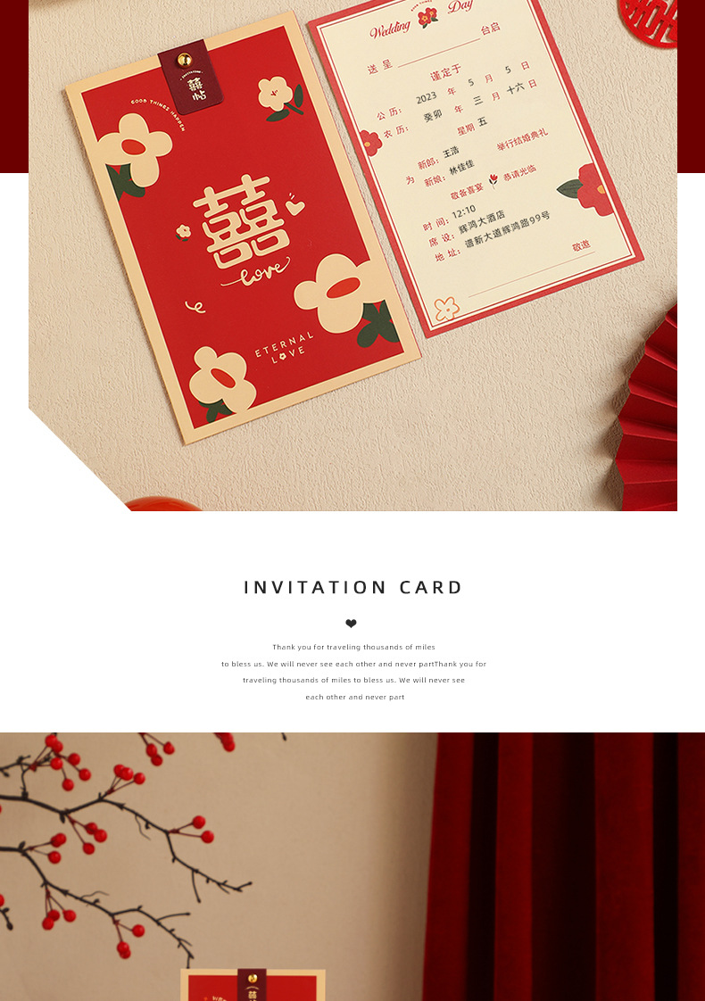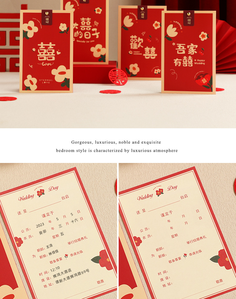 2023 tarjeta de invitación de boda banquete de boda de papel tarjeta de invitación de boda elegante de alto grado nicho simple impresión de invitación de boda