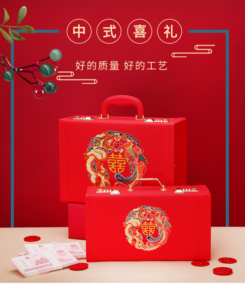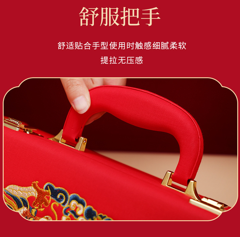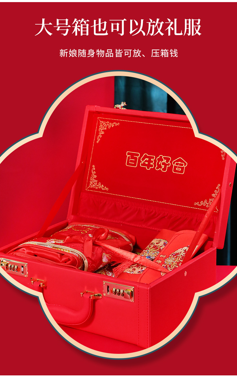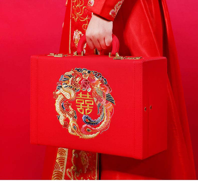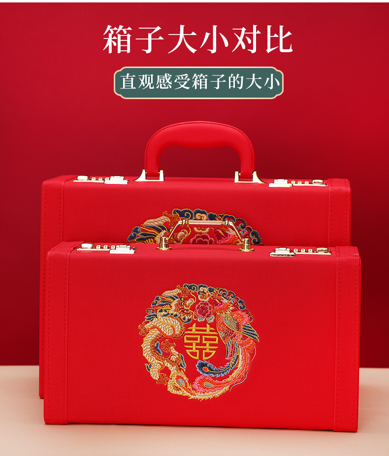 Maleta de novia para la boda, dotación de compromiso de 100,000 yuanes, caja de regalo para vestido de novia, joyas, dotación, caja de boda roja, dragón y fénix de buena presagio