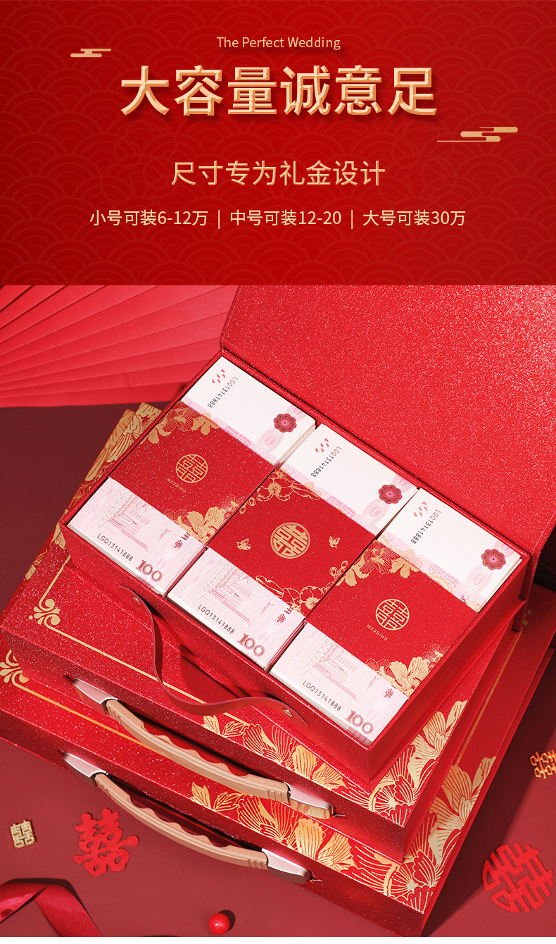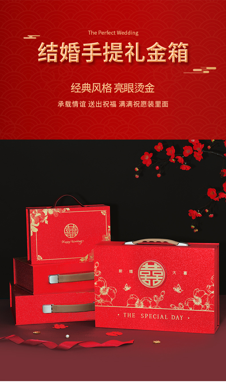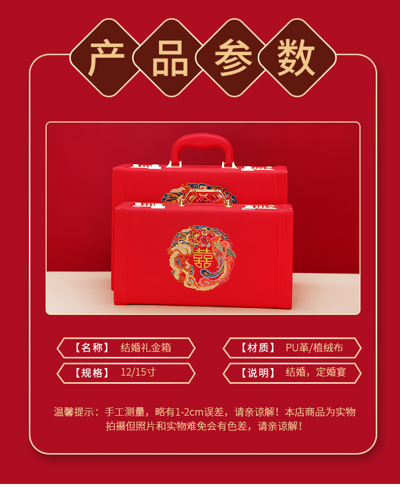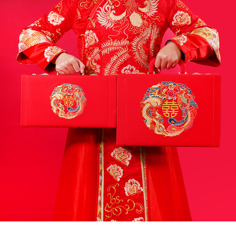 Maleta de novia para la boda, dotación de compromiso de 100,000 yuanes, caja de regalo para vestido de novia, joyas, dotación, caja de boda roja, dragón y fénix de buena presagio