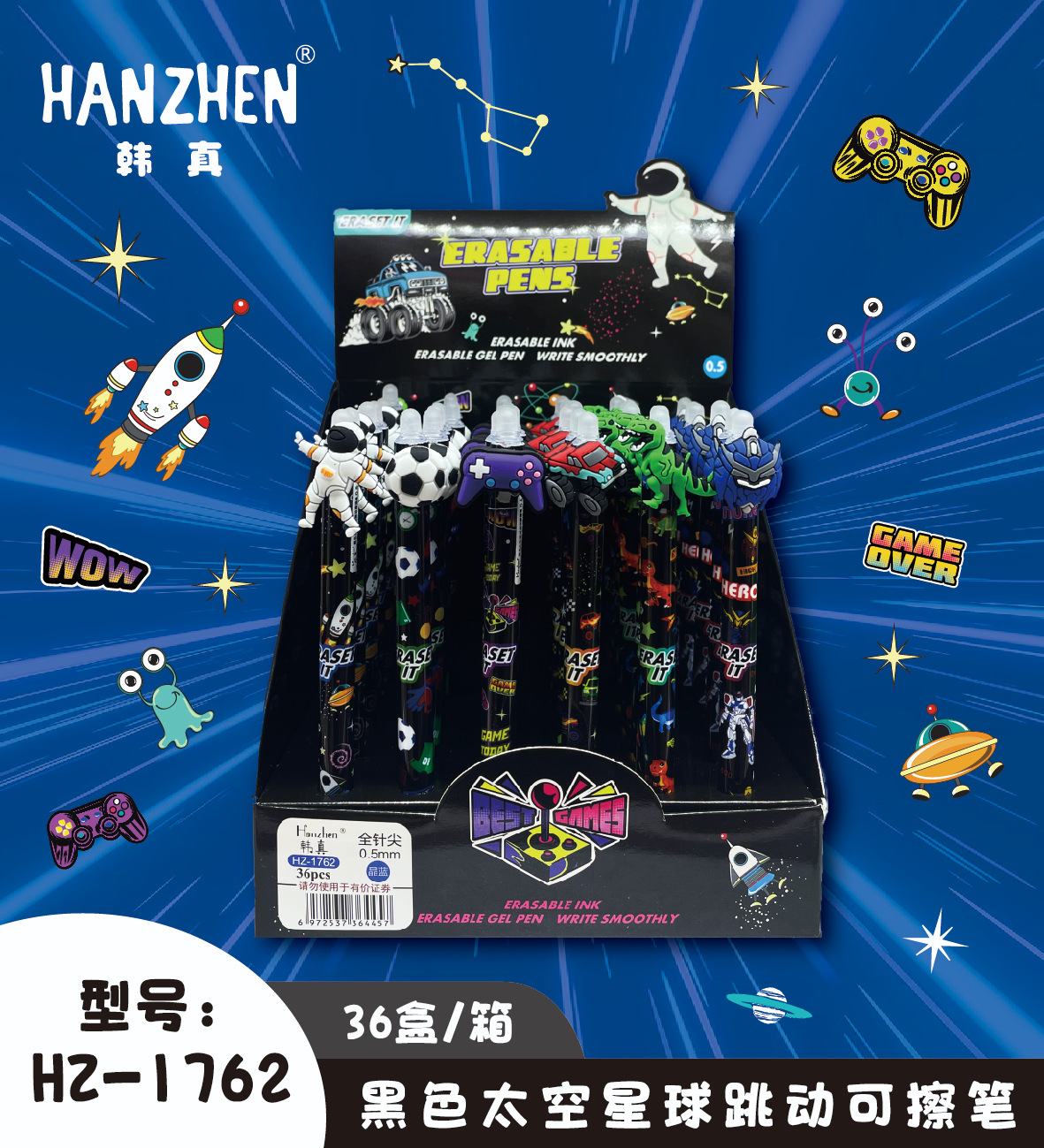 Hanzhen lápiz borrable 1762 modelo negro espacio planeta 0.5mm lápiz borrable para estudiantes papelería