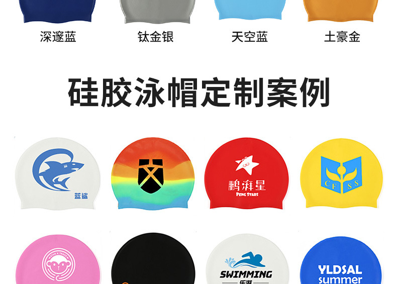 Gorra de natación de silicona extra grande gorra de natación de protección auditiva gigante transfronteriza gorra de natación vendedora caliente impresa LOGO fábrica al por mayor