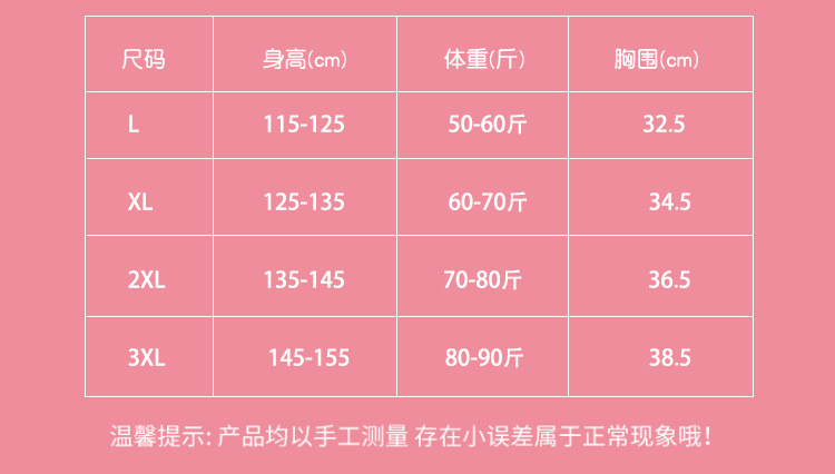 | Talla | L [altura recomendada 115 - 125cm, 50 - 60 kg], XL [altura recomendada 125 - 135cm, peso 60 - 70 kg], 2xl [altura recomendada 135 - 145cm, peso 70 - 80 cm], 3xl [altura recomendada 145 - 155cm, peso 80 - 90 kg] |