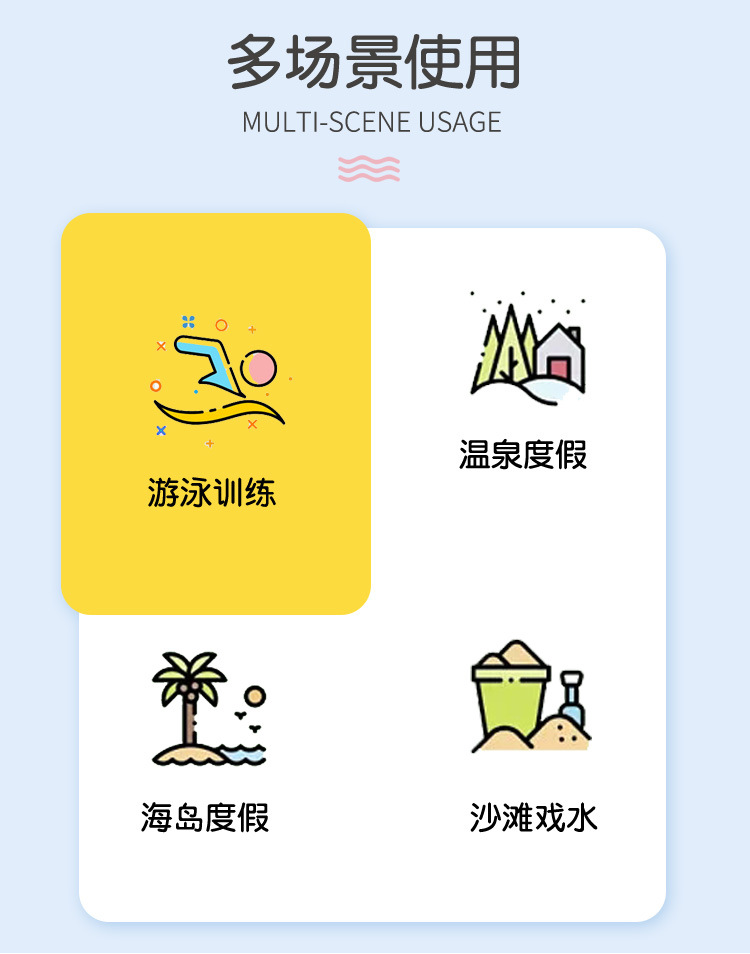 | Escenarios aplicables | Tendencias deportivas, equipos de entretenimiento en el campo, tenis de mesa y plumas, natación y vadeo |