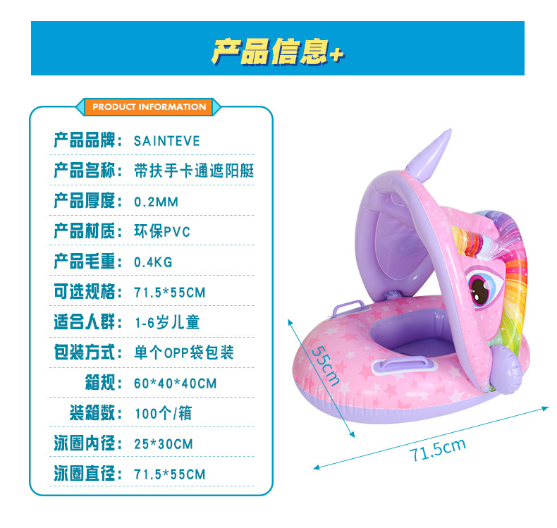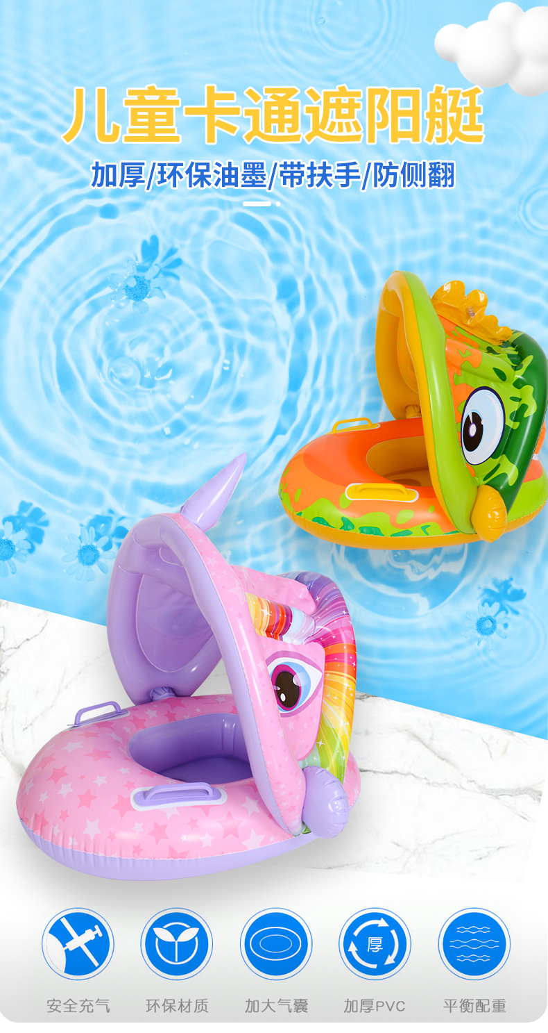 | Diámetro interior inflado | Barco con sombrilla de unicornio rosa,Barco con sombrilla de dinosaurio verde,Sombra bote robot azul |