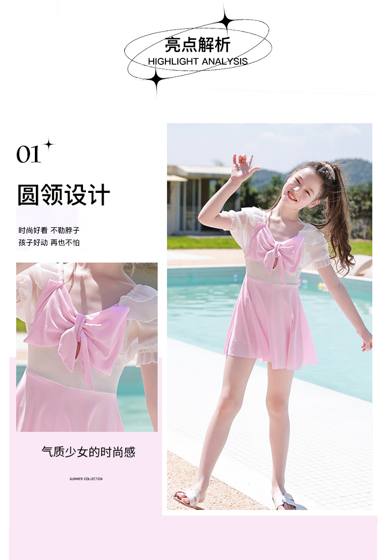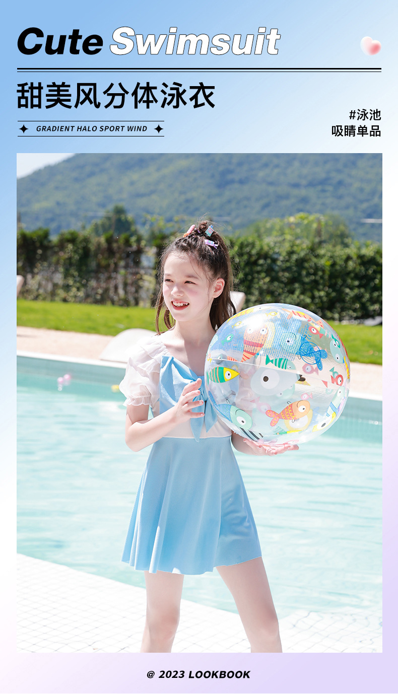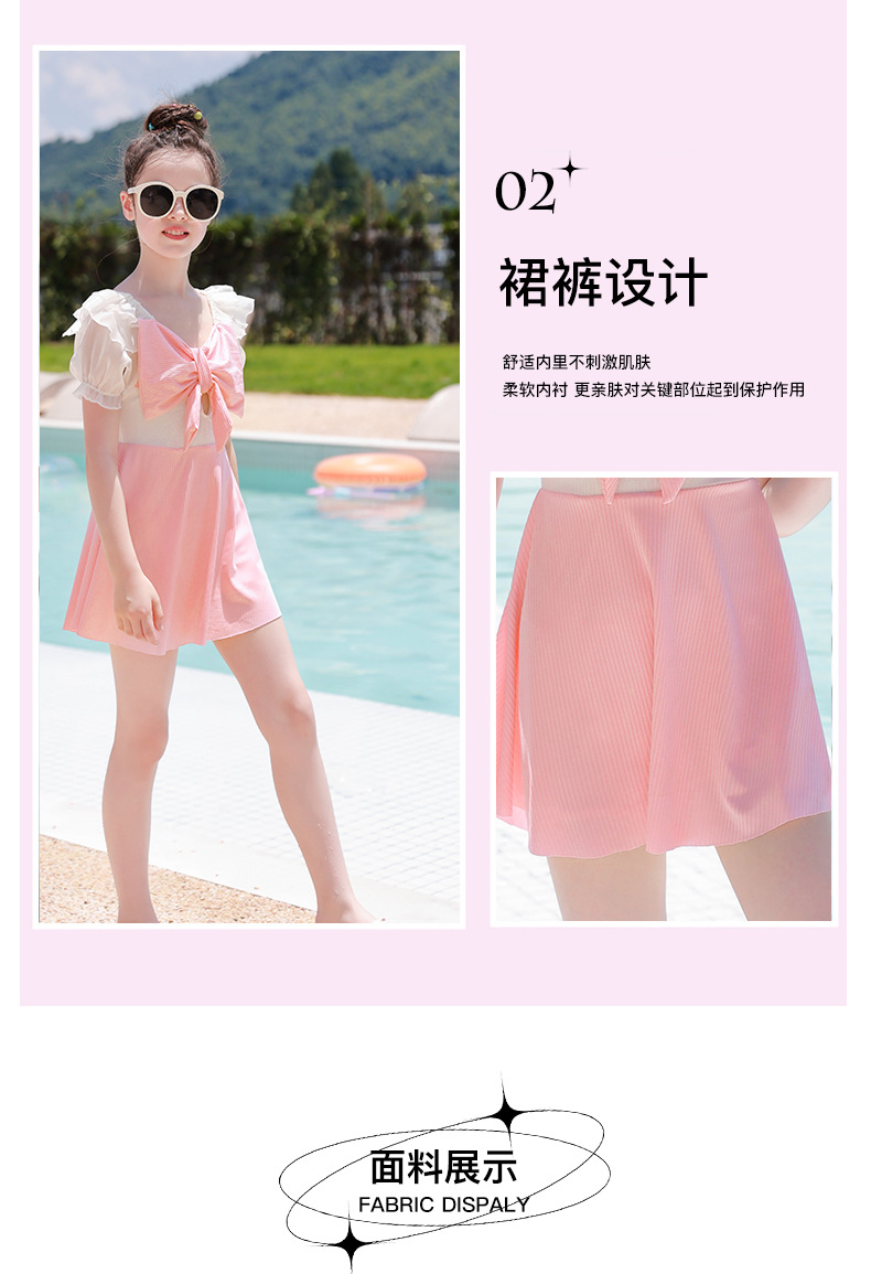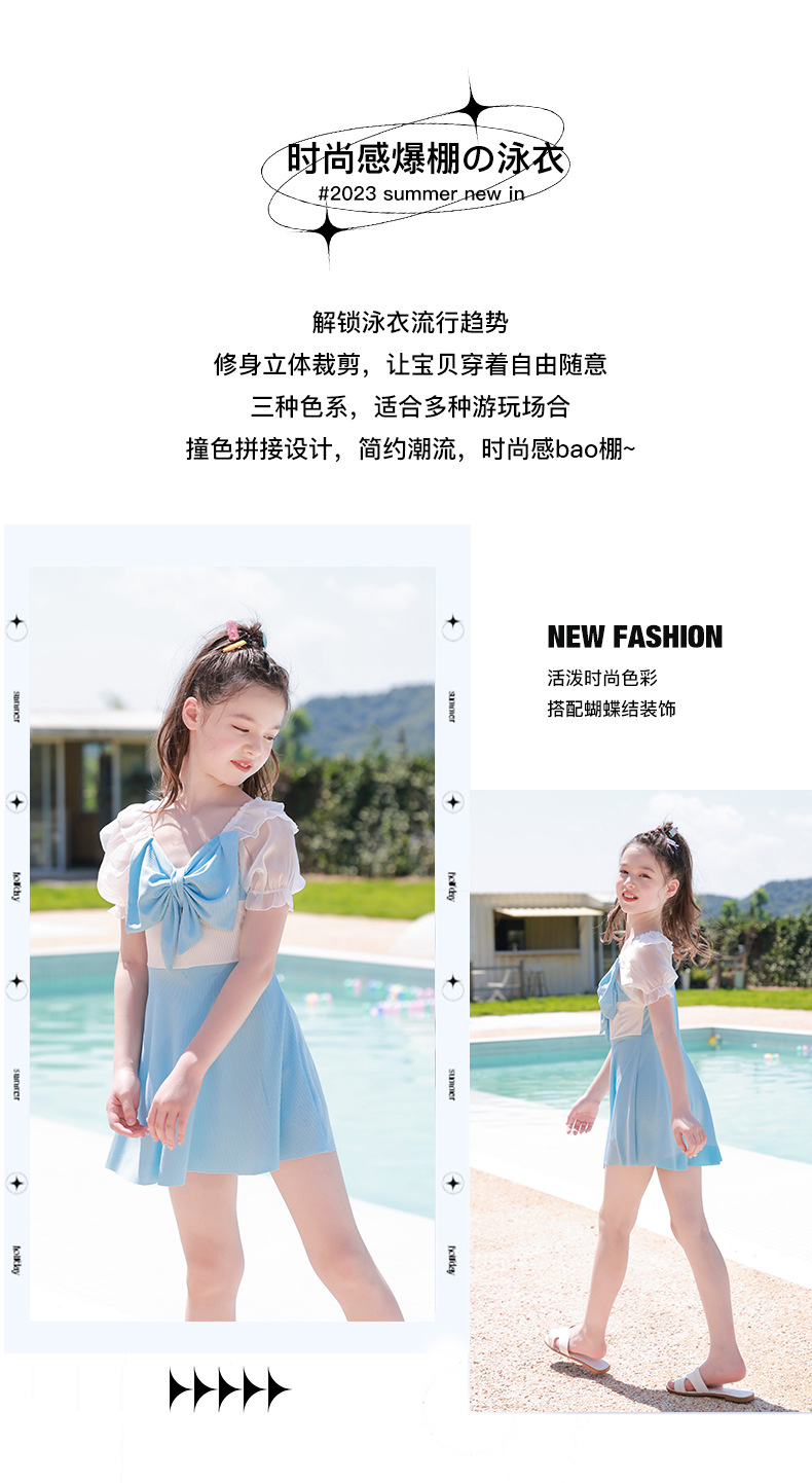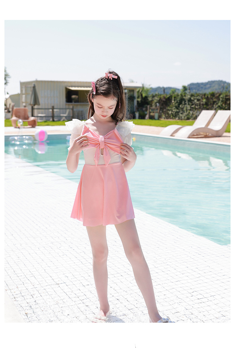 Traje de baño de los niños 2023 nuevas niñas medio y grandes niños estudiantes lindo arco falda dividida traje de baño de aguas termales