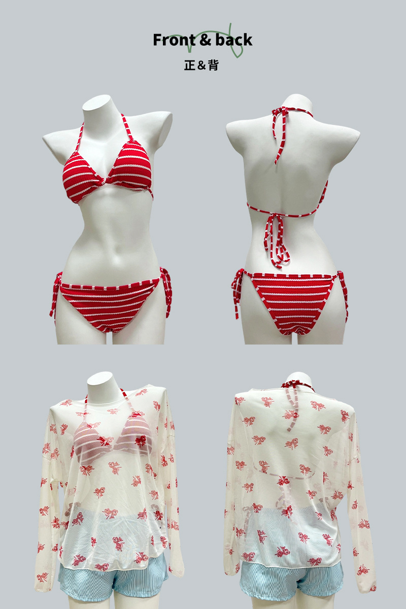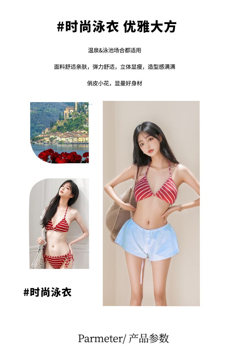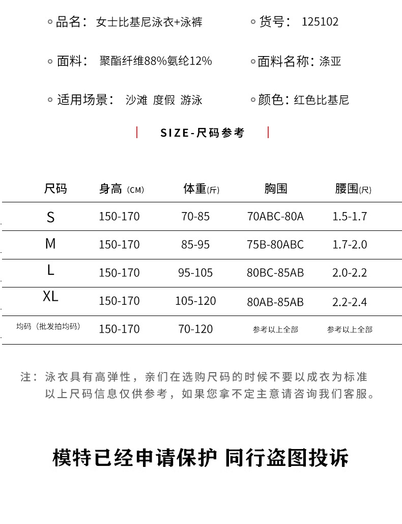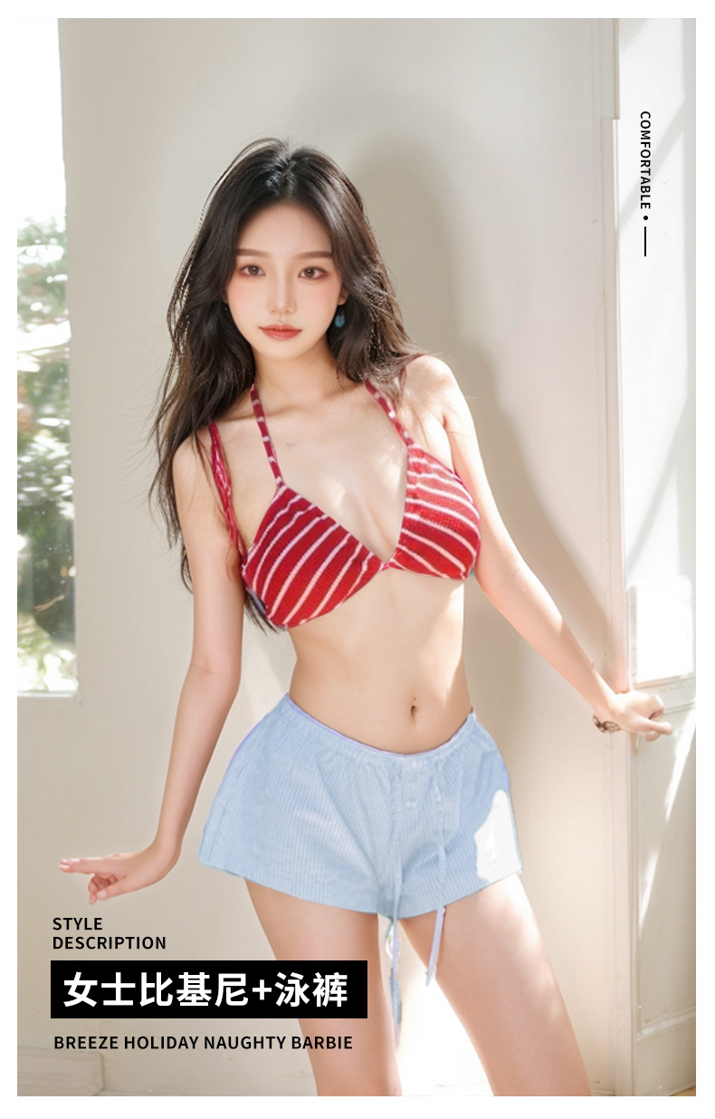 | Colores | Pantalones cortos rojo bikini azul,Blusa de bikini rojo,Rojo (juego de dos piezas Biji),Blusa separada,Pantalones cortos azules |