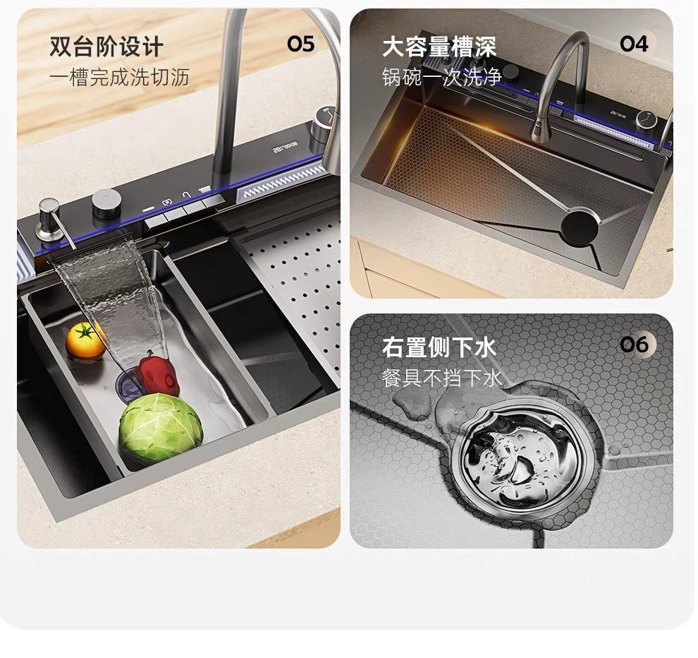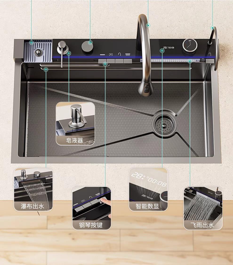 | Color | Panel súper grueso 5.0 [actualizar cesta de drenaje de cuatro esquinas], grifo multifuncional integrado de ballena - 68 * 45cm |