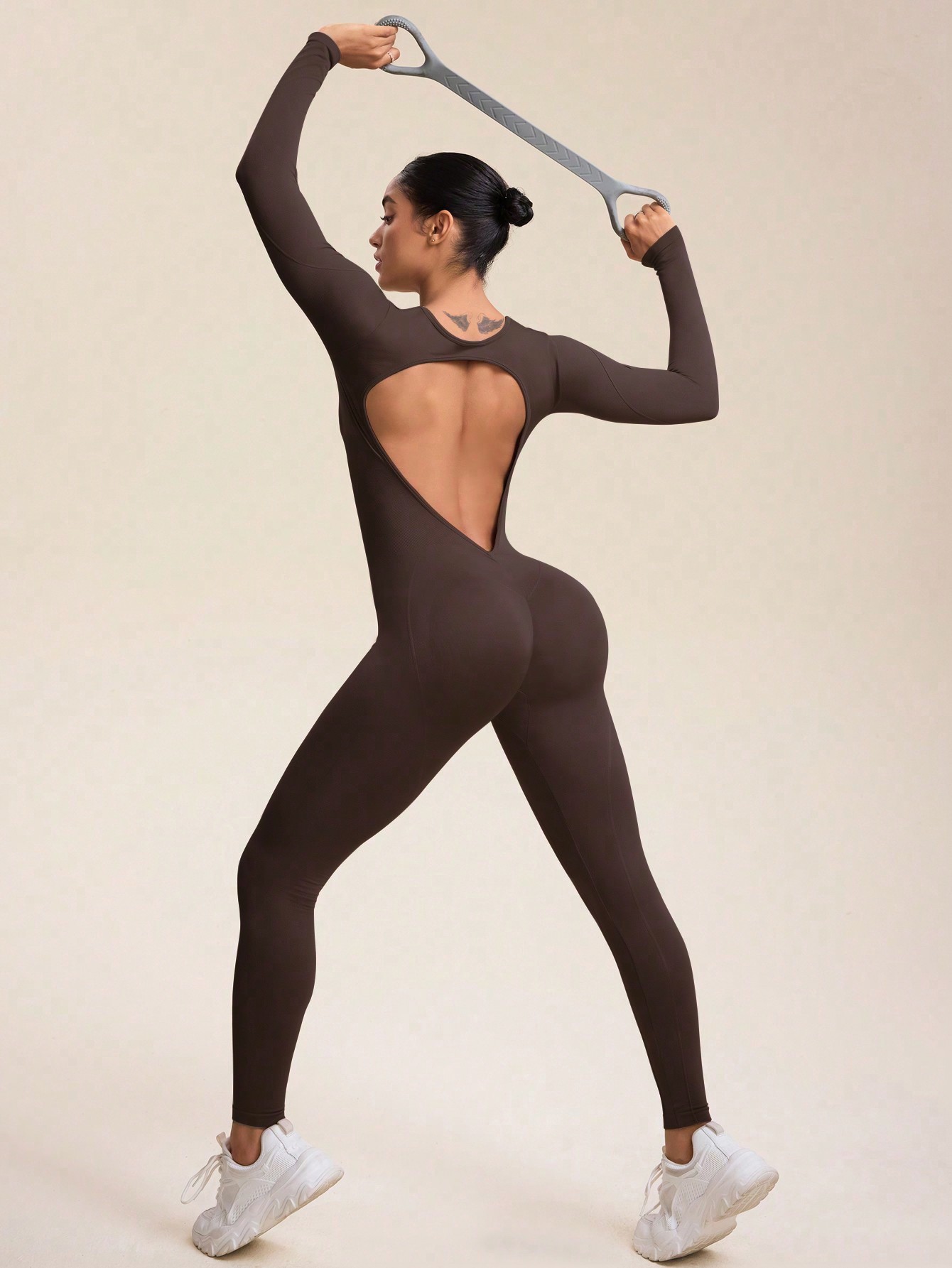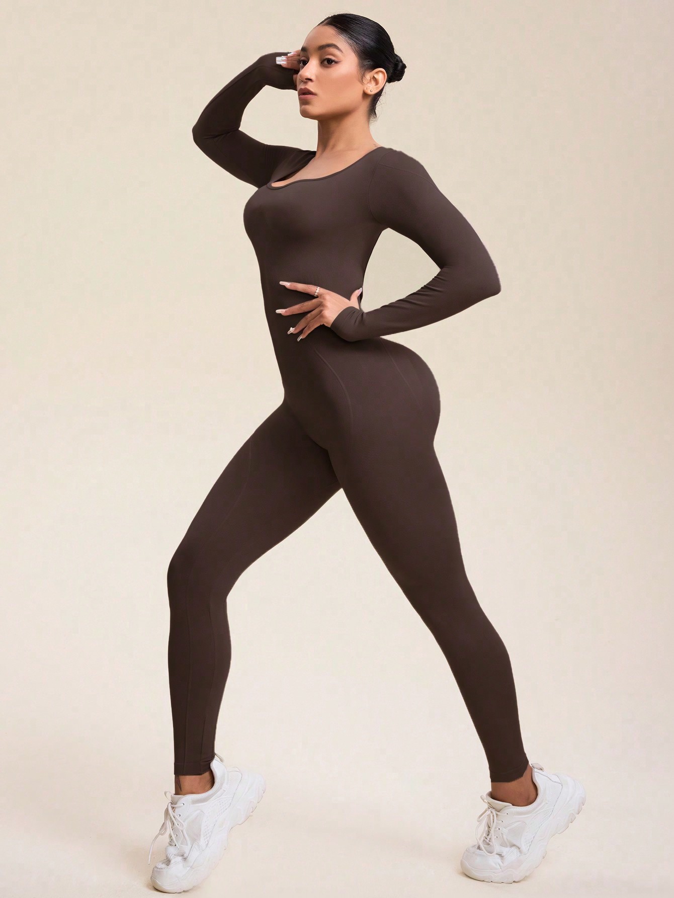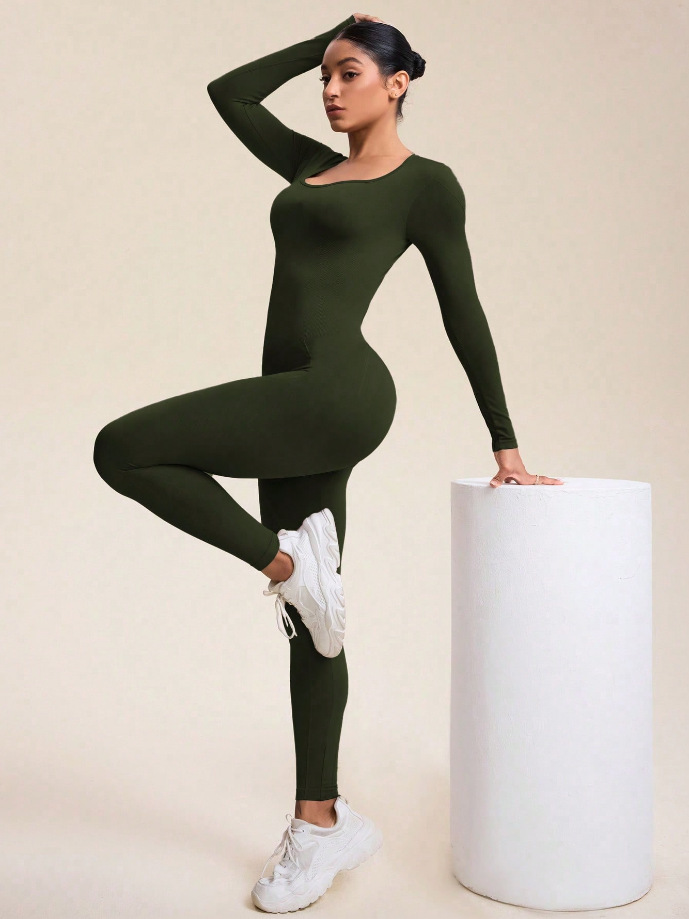 Otoño e invierno nuevo estilo europeo y americano con cremallera de manga larga nude yoga mono mujer fitness diario belleza espalda deportiva mono