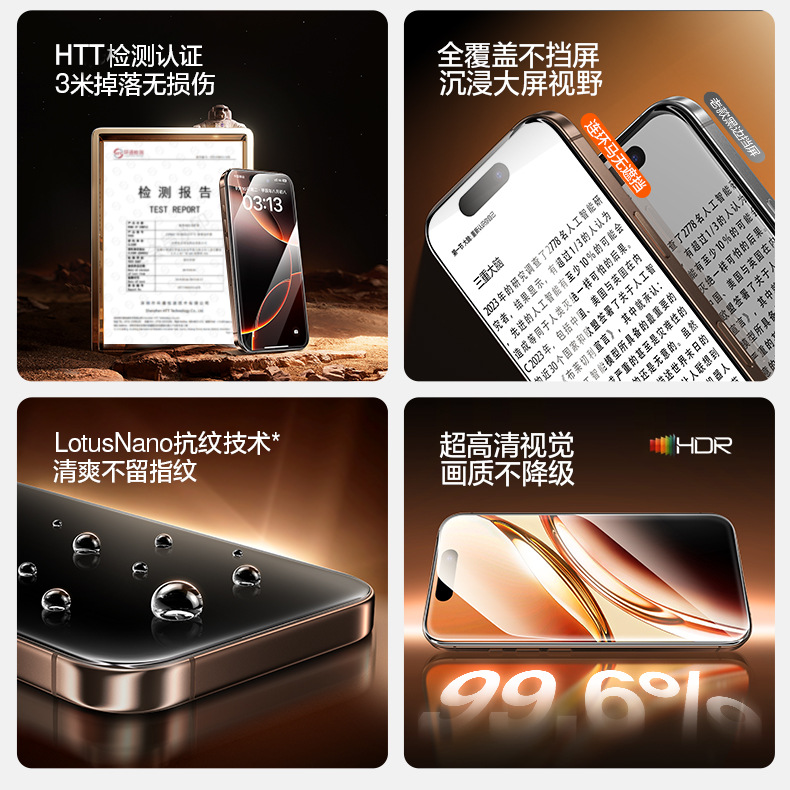 | Características de la película | Alta definición, a prueba de explosiones, a prueba de polvo, a prueba de caídas, pantalla completa |