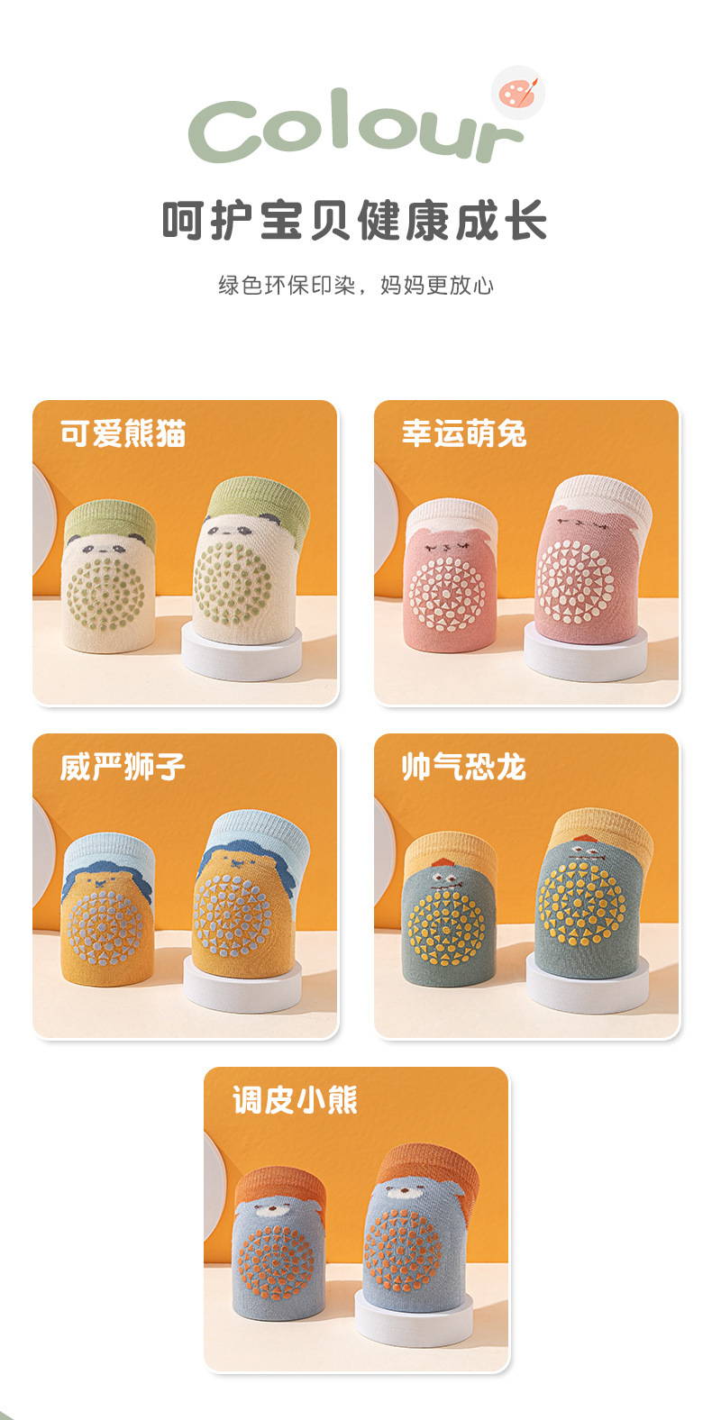 Panda blanco,Conejo rosado,León amarillo,Oso azul,Dinosaurio verde