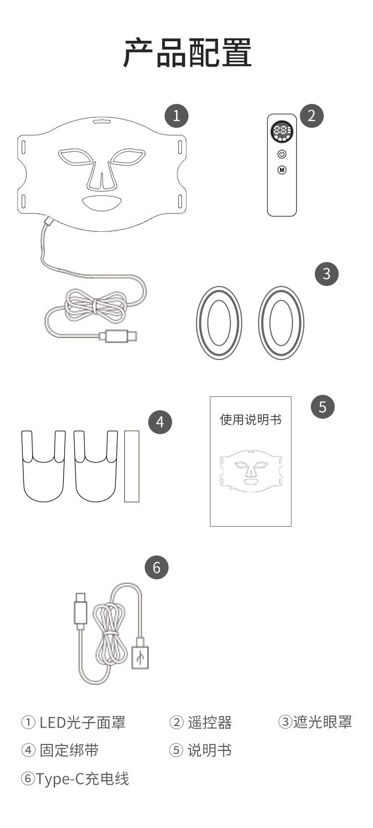 配件:面罩*1 控制器*1 说明书*1 彩盒包装*1