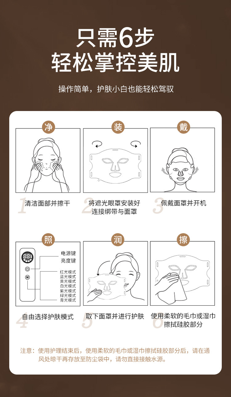 7.(LED款)光波波长:1.红光620-630NM 2.蓝光440-450NM
