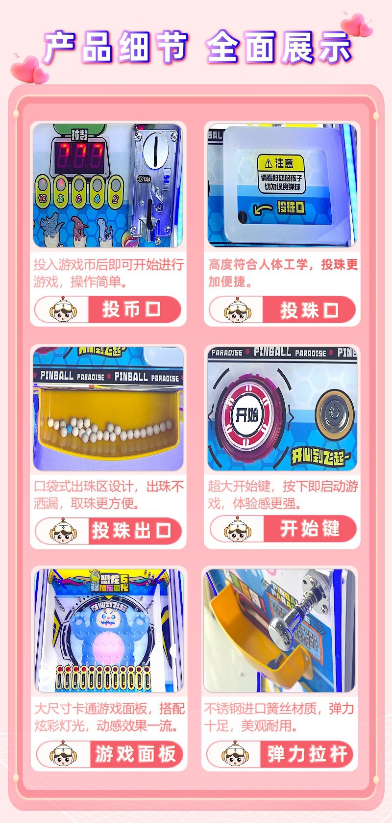Todos los centros comerciales, parques infantiles, máquinas comerciales de pinball, parques infantiles, tirantes de cuentas de vidrio que apoyan el drenaje de escenas comerciales