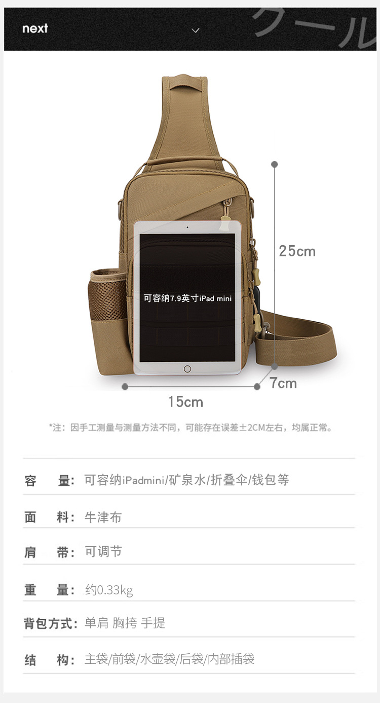 Bolso de pecho al por mayor de fábrica para hombres y mujeres nuevo bolso diagonal de un solo hombro al aire libre mochila pequeña bolsa táctica multifuncional para viajes y ciclismo