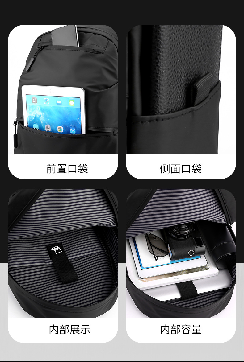 Mochila de tela Oxford mochila de 14 pulgadas Bolsa de ordenador multi-compartimento interfaz de carga USB mochila casual de los hombres