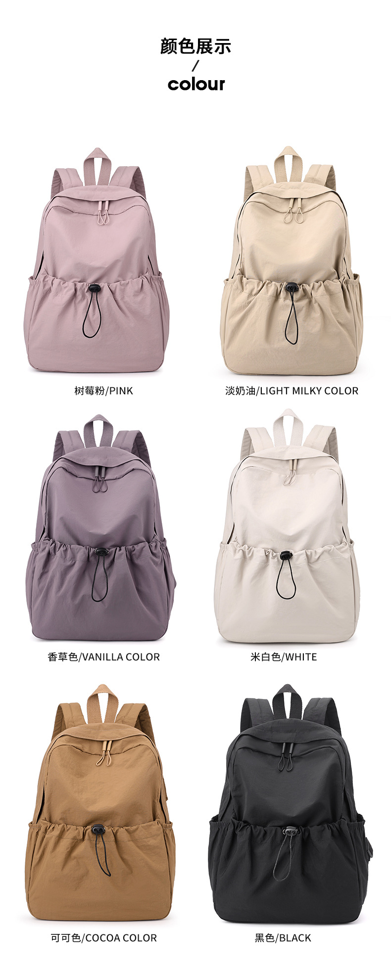 | Color | Negro, blanco, beige, rosa, caqui, morado |