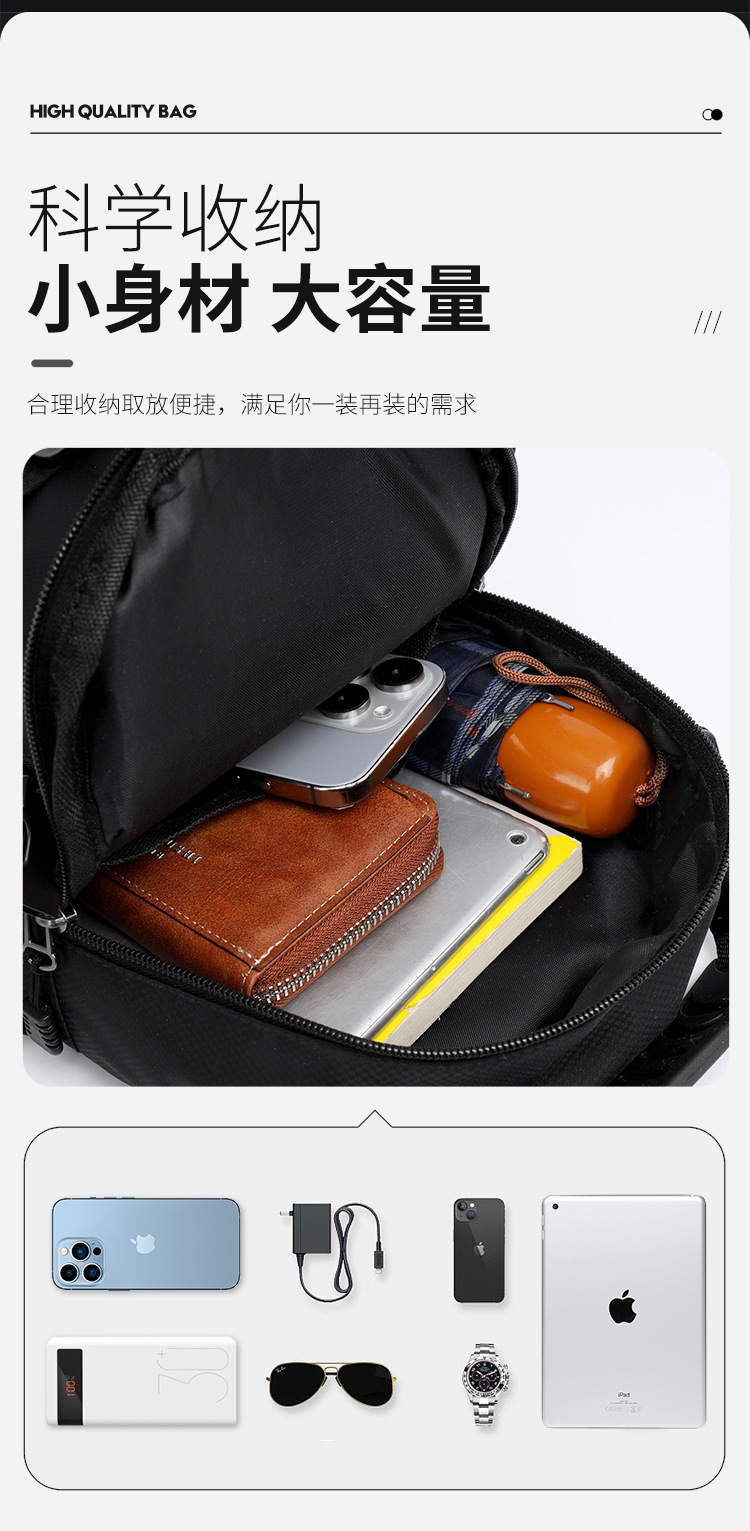Multifuncional al aire libre nuevo estilo casual para hombre bolso de bolsillo de viaje al aire libre bolso de pecho simple y moderno bolso diagonal de un solo hombro