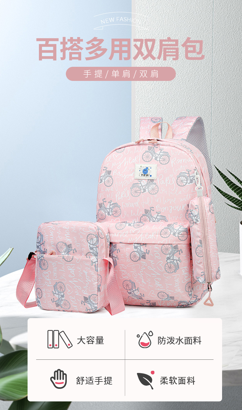 Nuevo Comercio exterior simple mochila de tres piezas de gran capacidad mochila de viaje para estudiantes de secundaria moda todo a juego Bolsa De estudiante