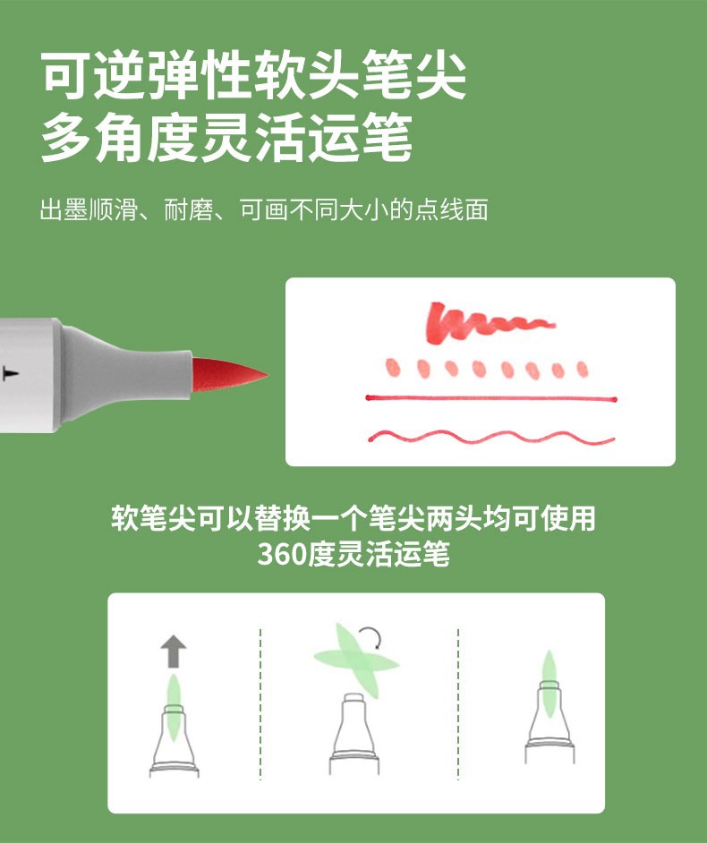 Guangna 5606 doble cabeza acrílico lápiz de marca de cabeza dura y suave puede plegar color pintado color de pintura de pintura de color color de la piel lápiz acuosa