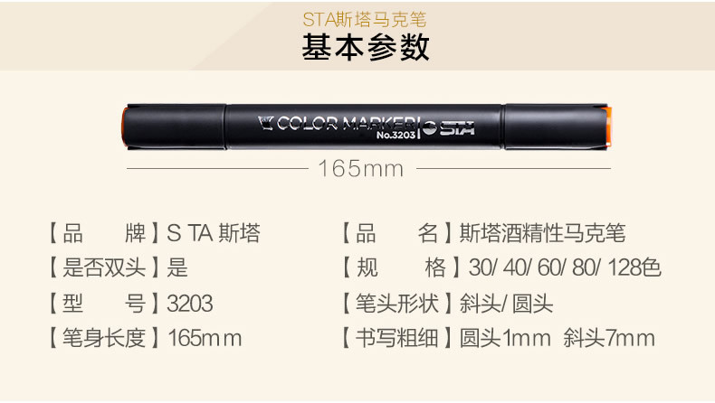 2.8克墨水,可以画250米。双头 一头6MM 一头1MM 笔头耐磨、笔触适中