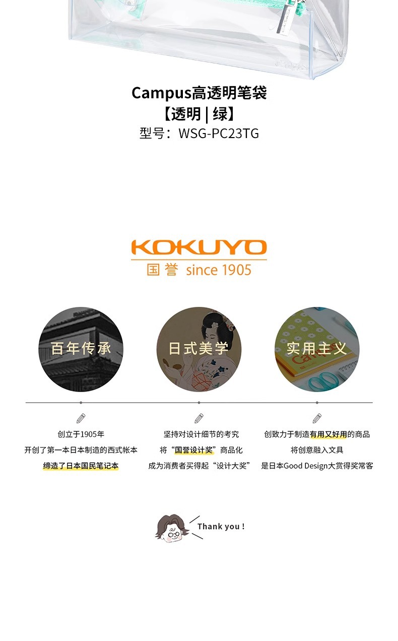 Japón KOKUYO Bolsa de lápiz de alta transparencia de fama nacional Campus para estudiantes de secundaria secundaria para el examen de estudiantes de secundaria secundaria se puede llevar a la sala de examen