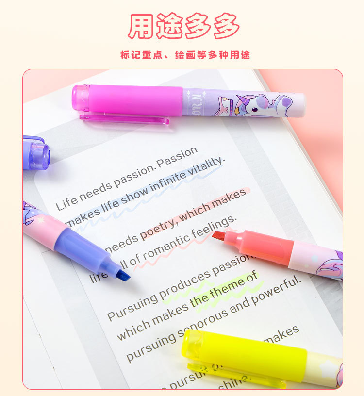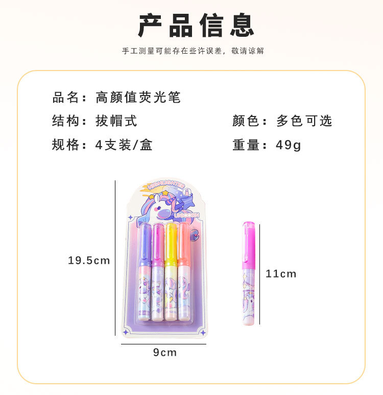 | Color de la pluma | 4 [bolígrafos fluorescentes unicornio] |