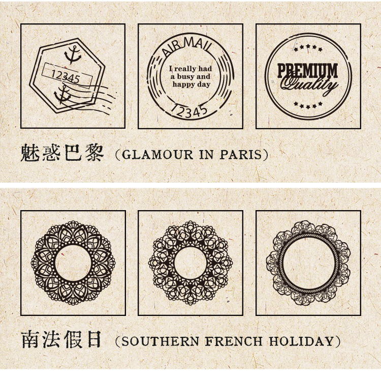 | Colores | 1 jardín de niebla,2 París encantador,3 Encuentro premeditado,4 Levantamiento elegante,5 Luz de la mañana polar,6 Vacaciones en el sur de Francia |