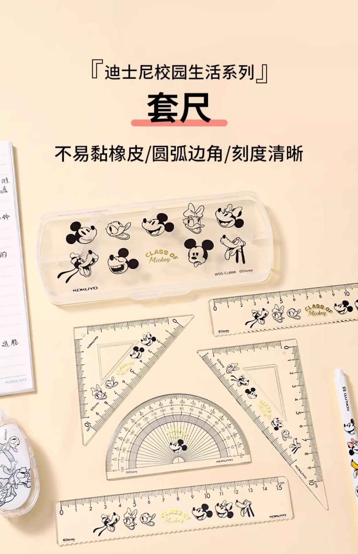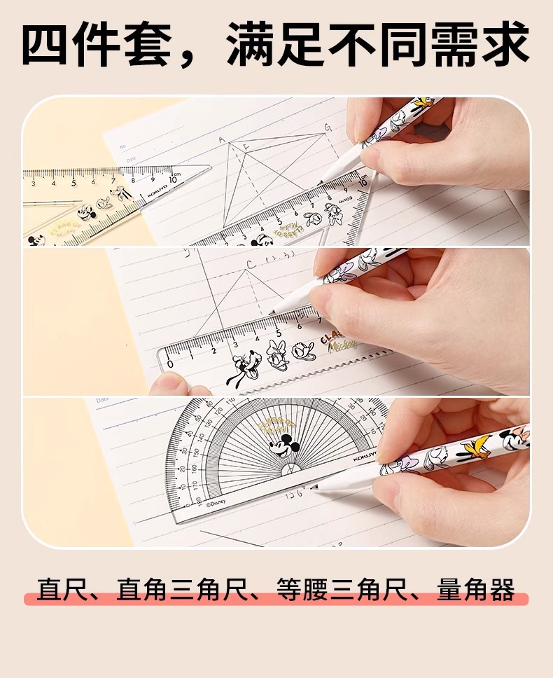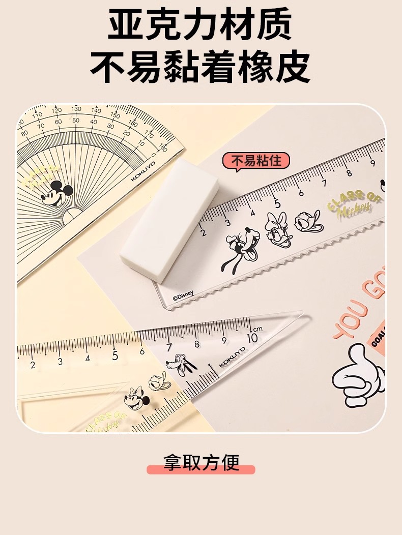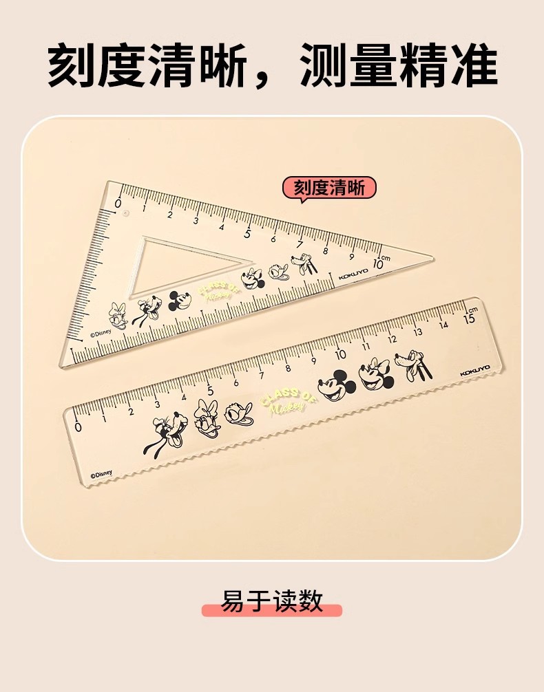 Japón KOKUYO juego de cuatro piezas de reglas de honor Mickey conjunto segunda bala Mickey vida escolar reglas transparentes