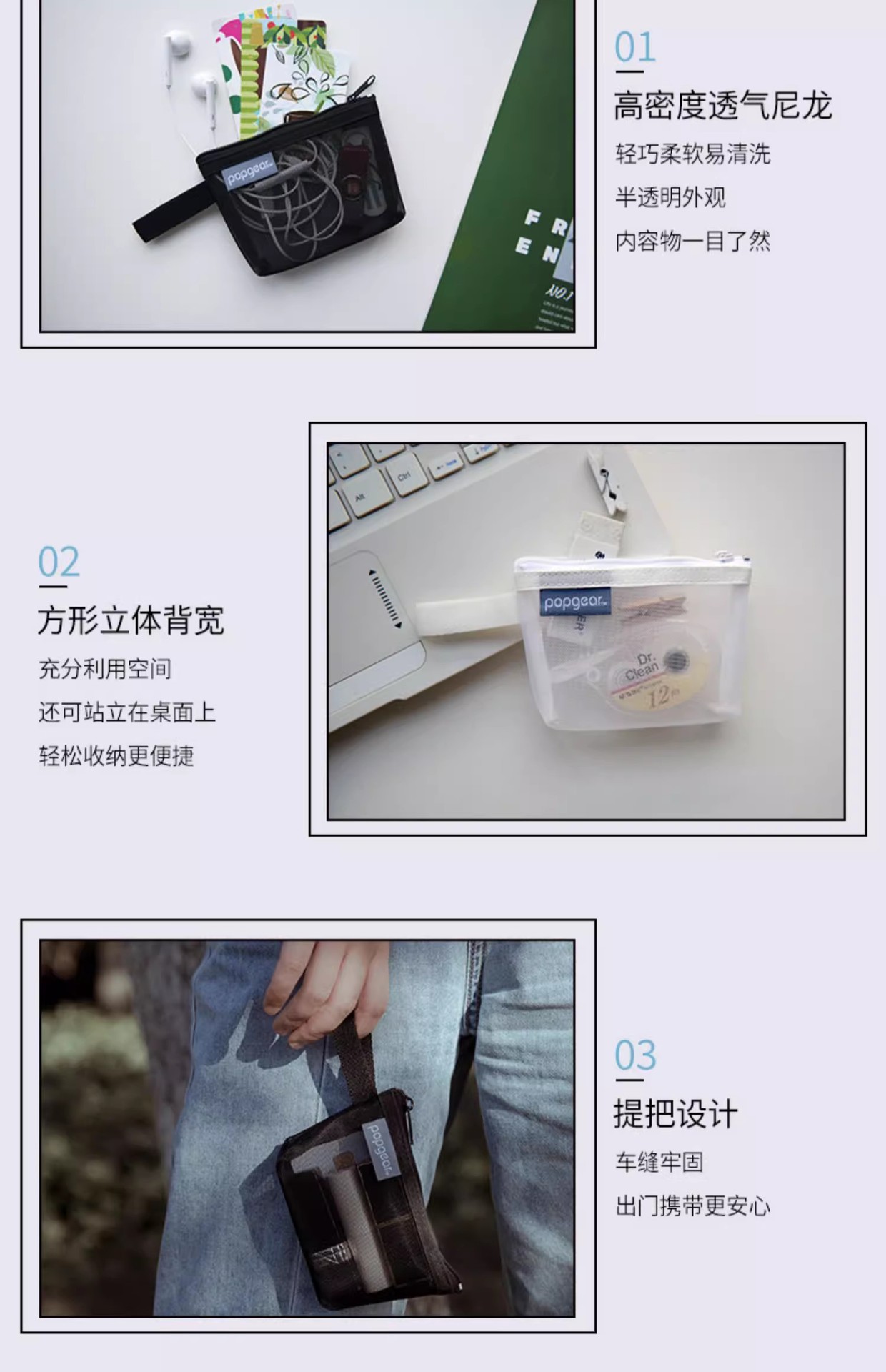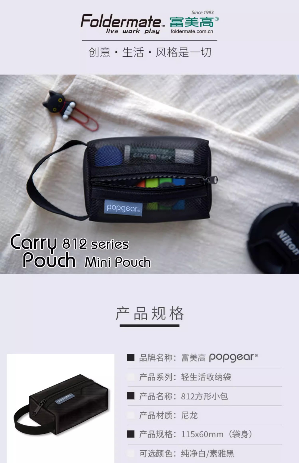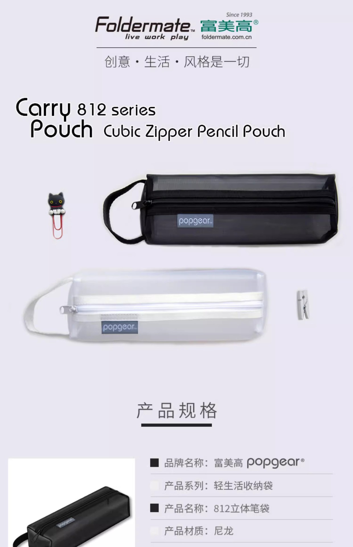 Fumeigao 812 tridimensional bolso de la pluma bolsa de triángulo cuadrado bolsa de almacenamiento de luz serie Life malla de color de contraste Tarjeta de la Caja dominante