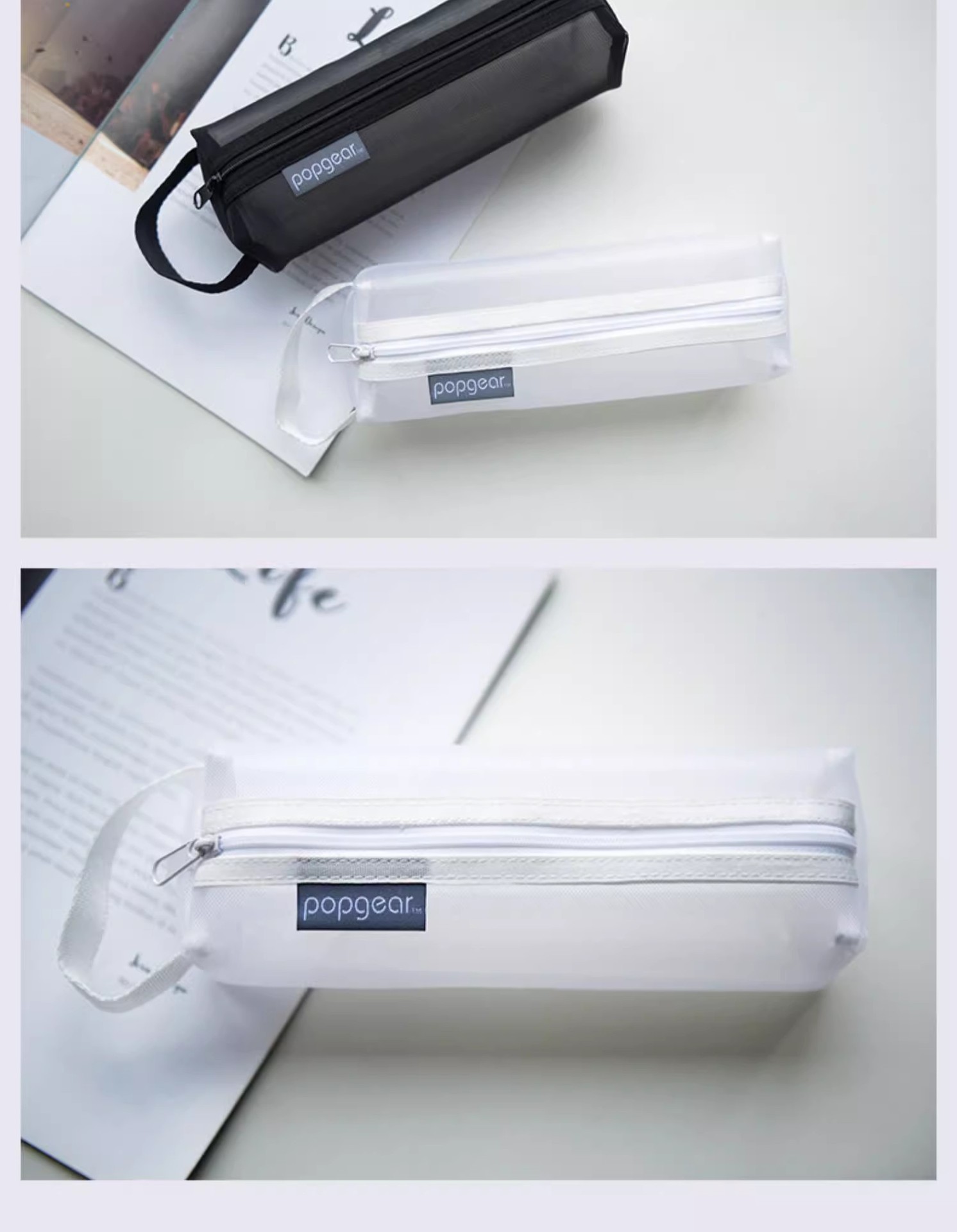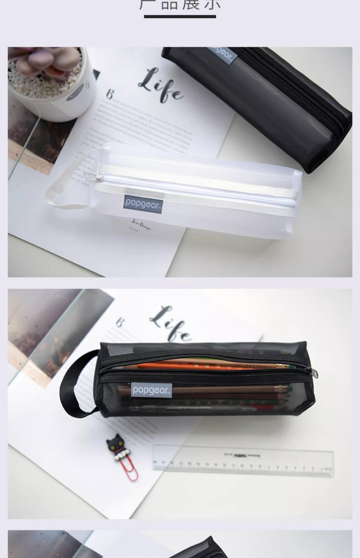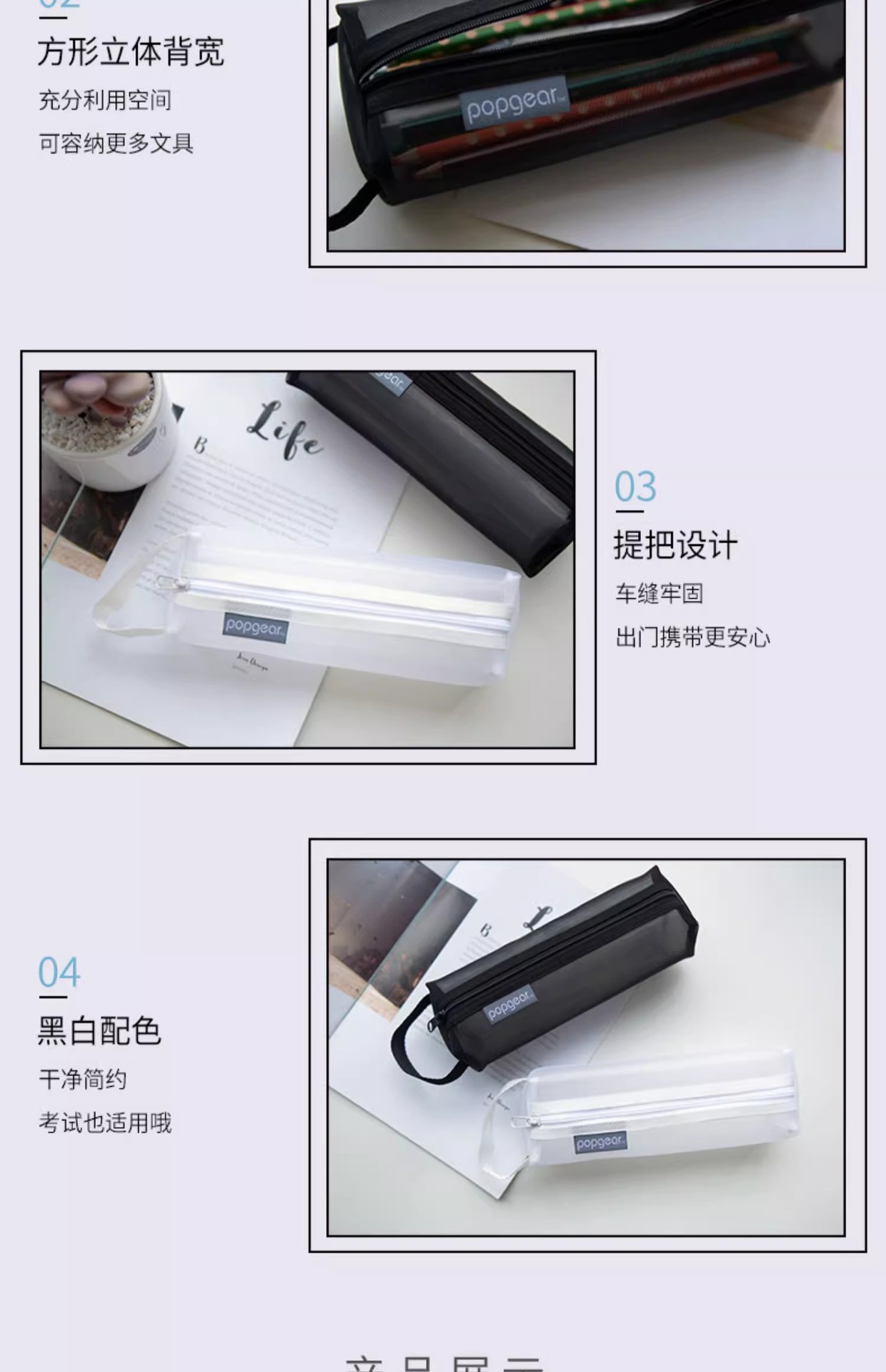 Fumeigao 812 tridimensional bolso de la pluma bolsa de triángulo cuadrado bolsa de almacenamiento de luz serie Life malla de color de contraste Tarjeta de la Caja dominante