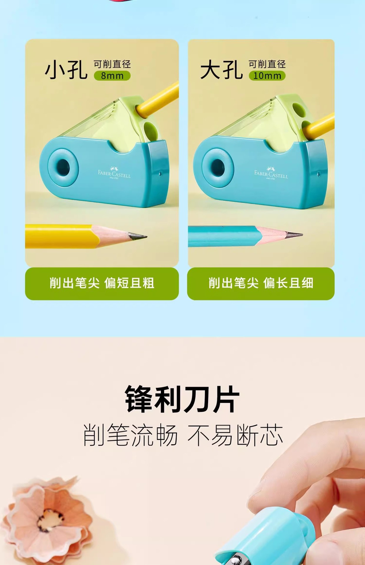 Sacapuntas de lápiz Faber-Jia alemán 1827 Sacapuntas de lápiz de un solo agujero de doble agujero Sacapuntas de lápiz de dibujo de plomo de color Sacapuntas de lápiz de Estudiante