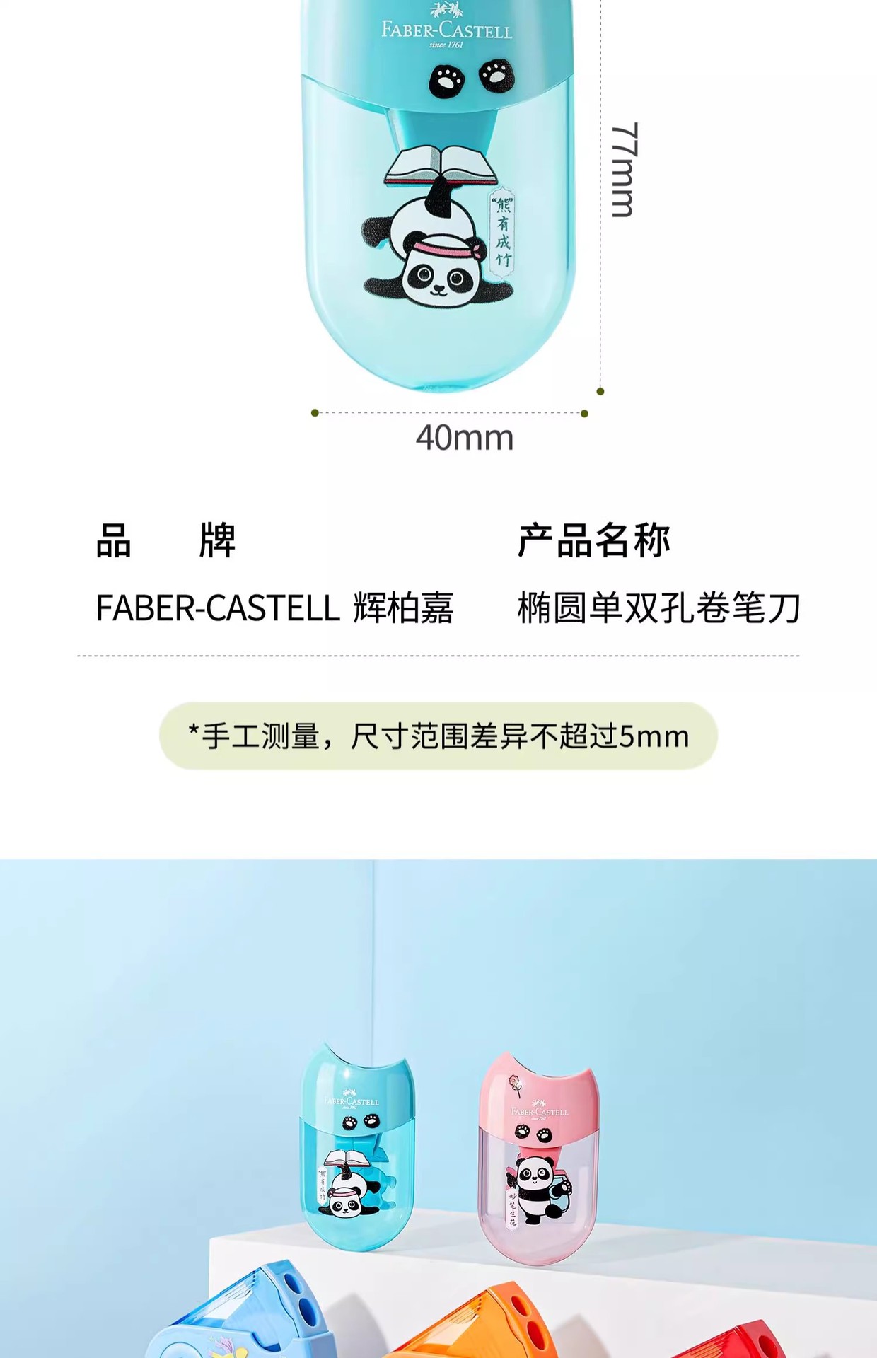 Alemania Pfizer Jia Guochao Panda de doble agujero cuchillo de lápiz afilador de lápiz para estudiantes 183566