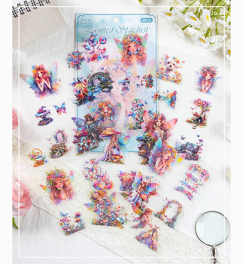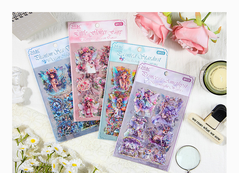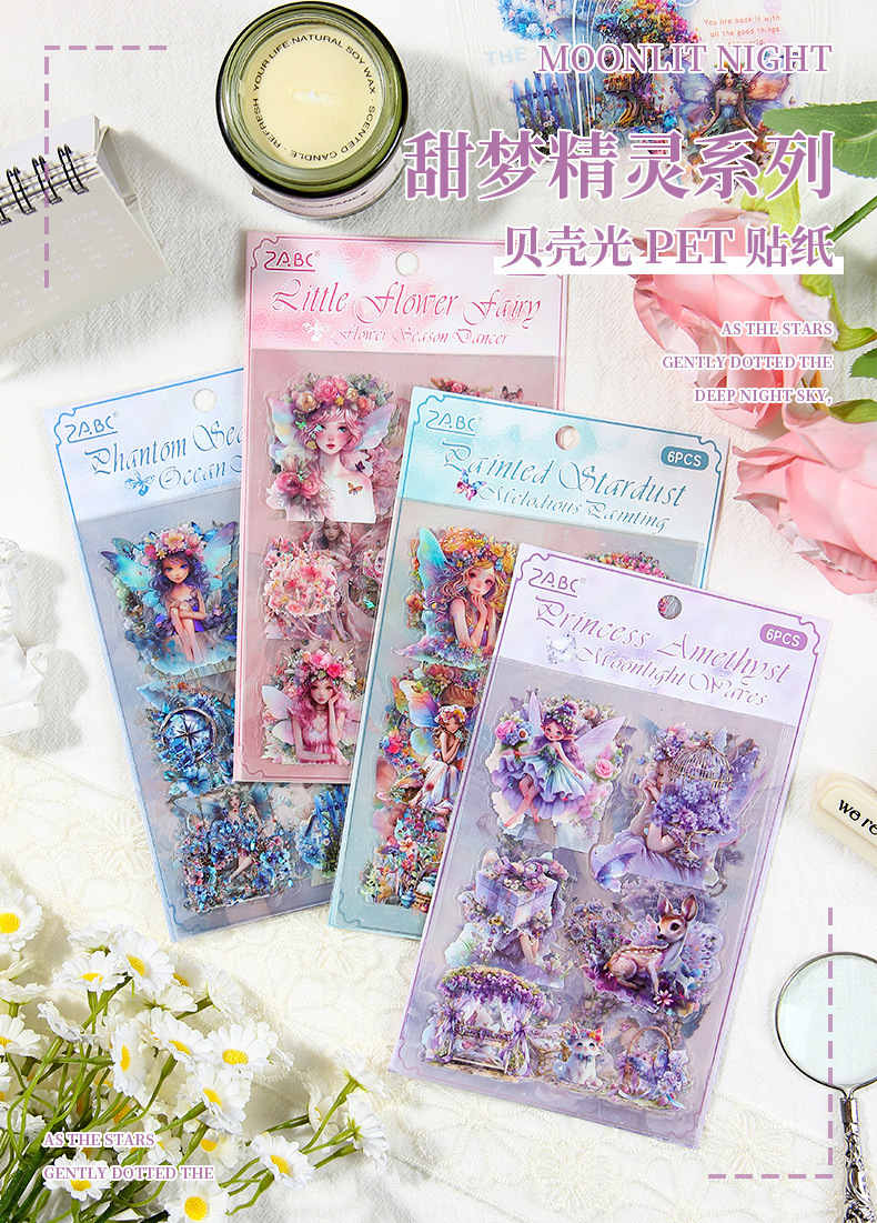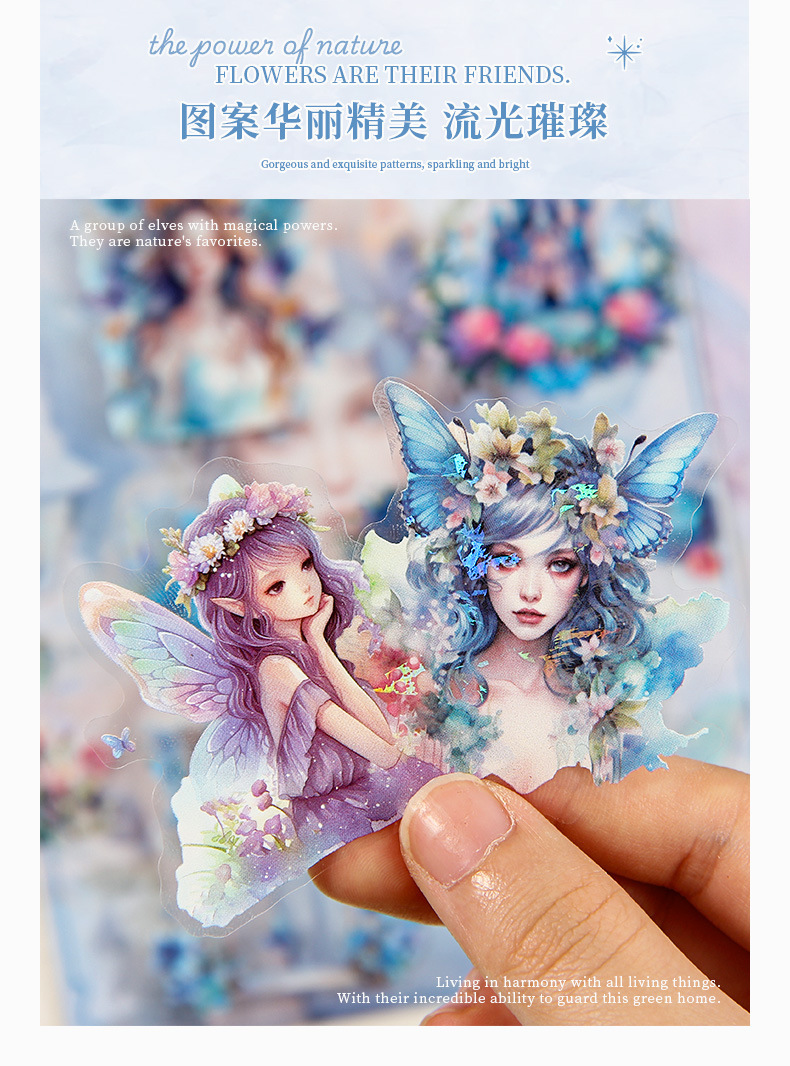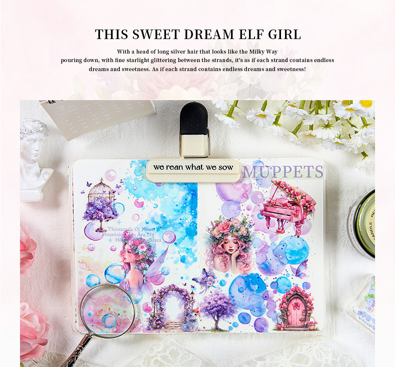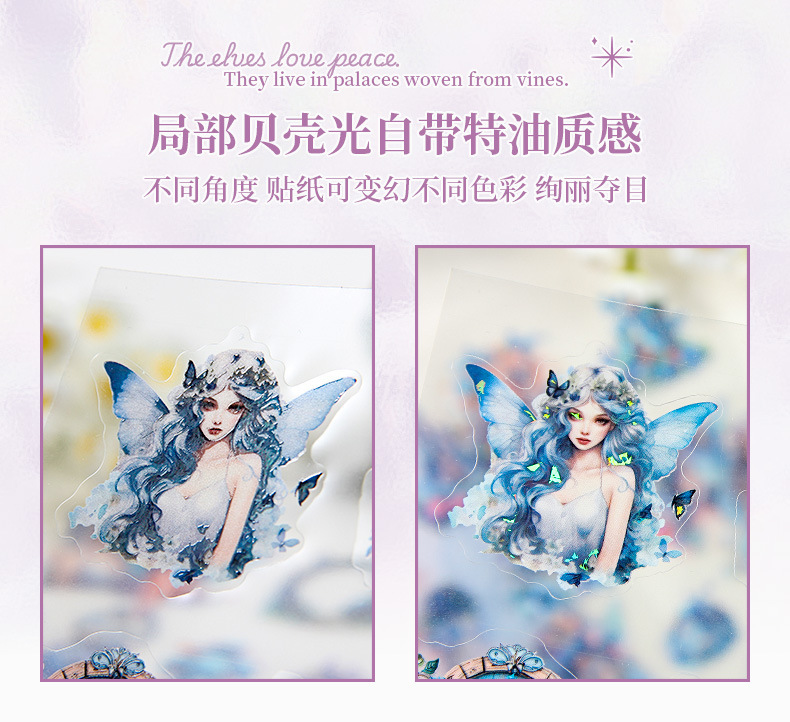 Sweet Dream Elf transparente pegatinas impermeables para mascotas diy diario pegatinas láser aceite especial pegatinas elf del corazón de la niña