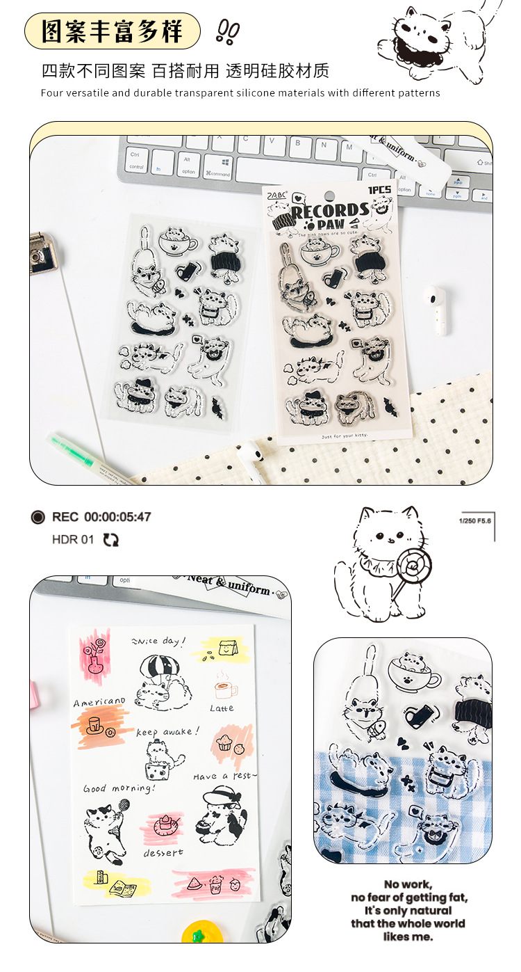 | Colores | Registro de garras en polvo,Meow sueño,Pegatinas lindas,Miau de terciopelo |
