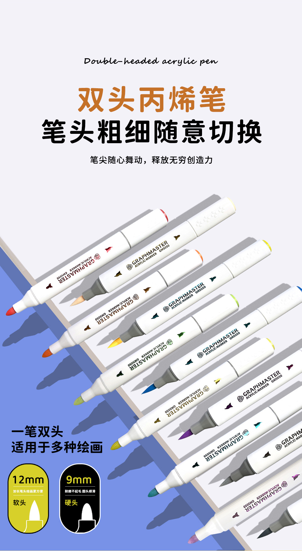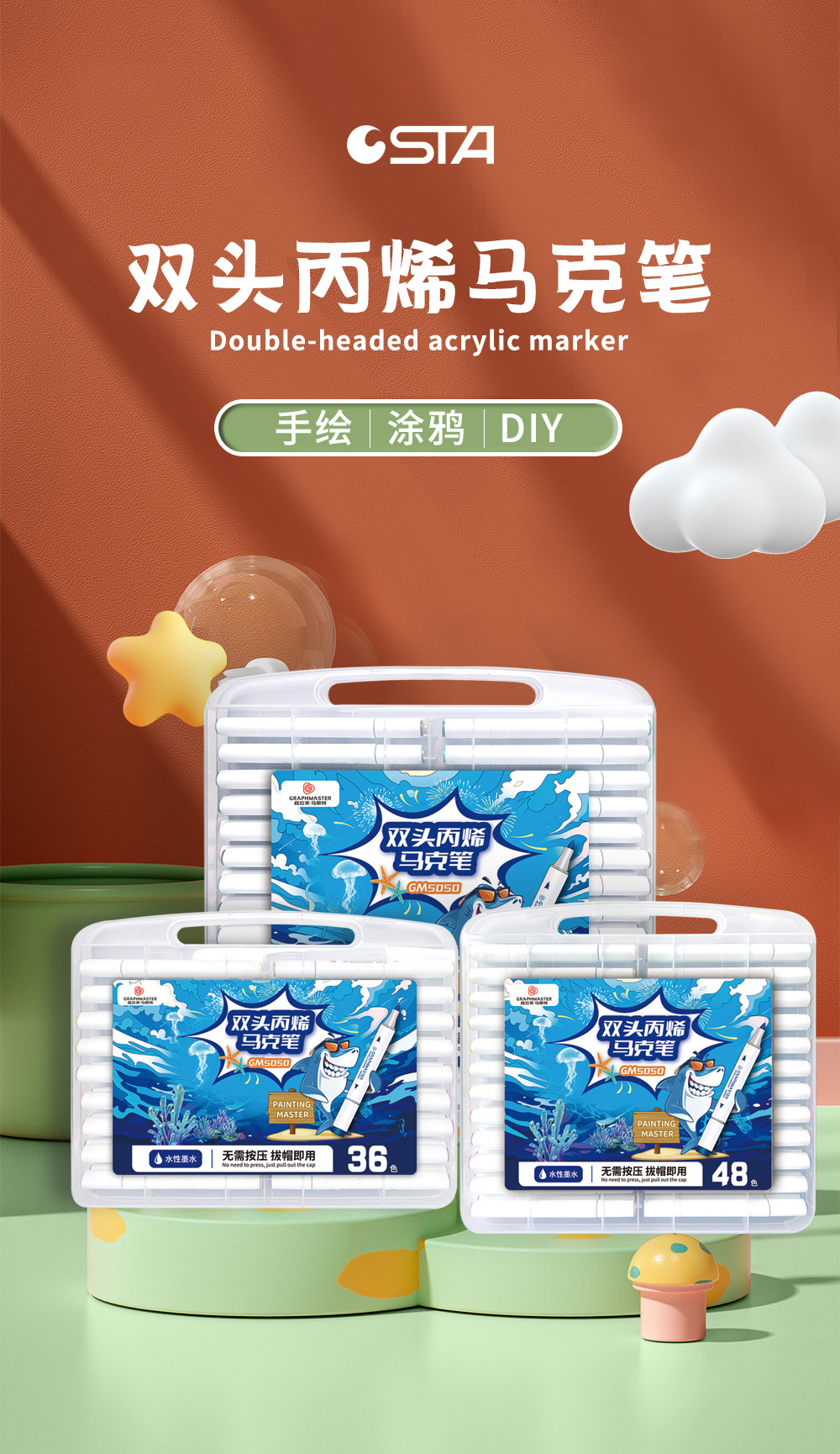 STA 5050 marcador acrílico de doble cabeza traje de cabeza suave GM marcador impermeable apilable color insípido no tóxico