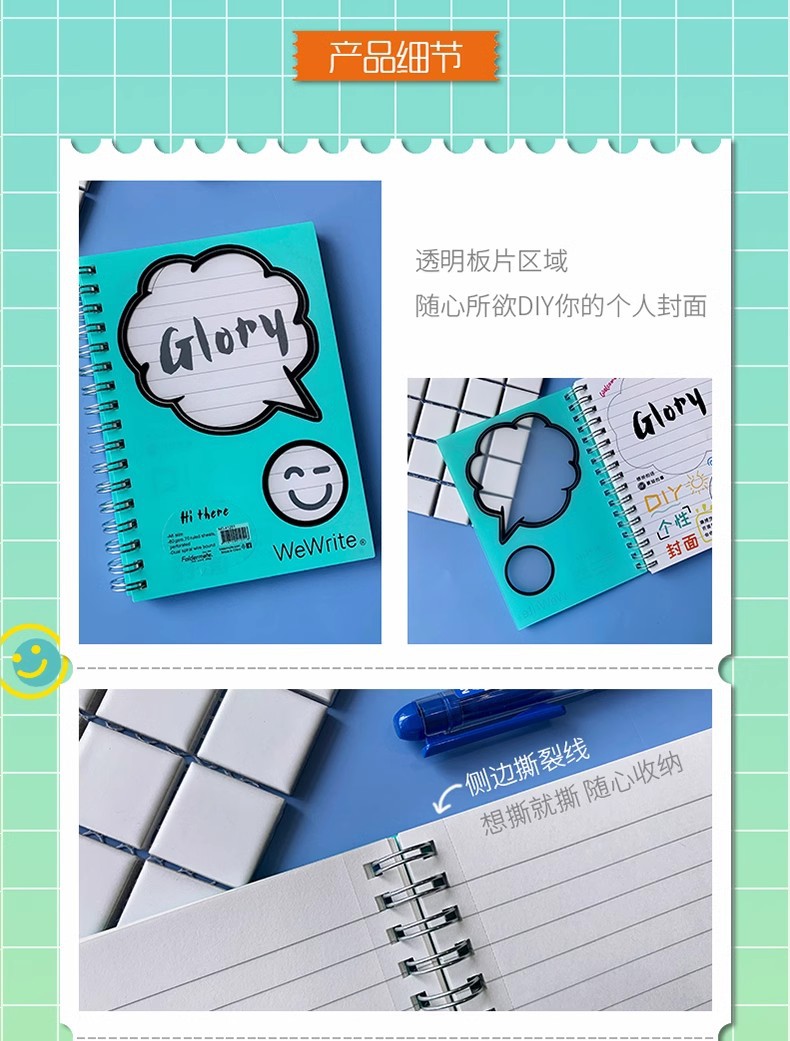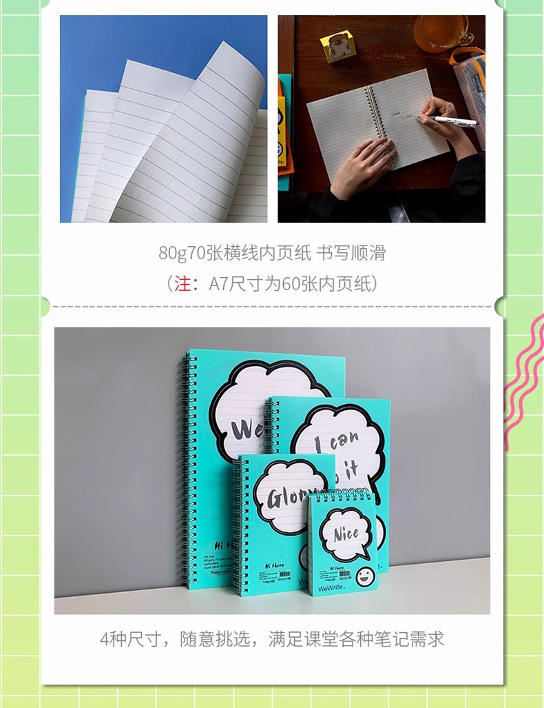 Fumigao Hola bobina libro A5 colorido libro a rayas A5 Notebook B5 tablero de mensajes transparente Bloc de notas libro de grabación