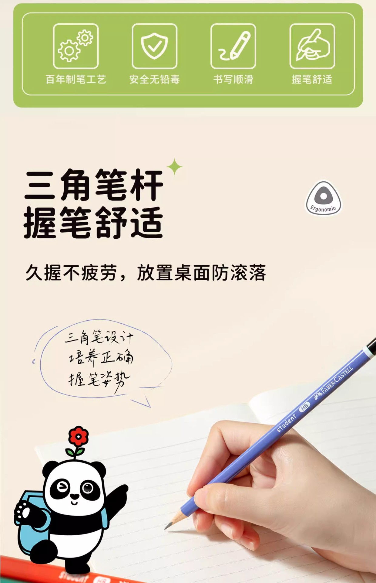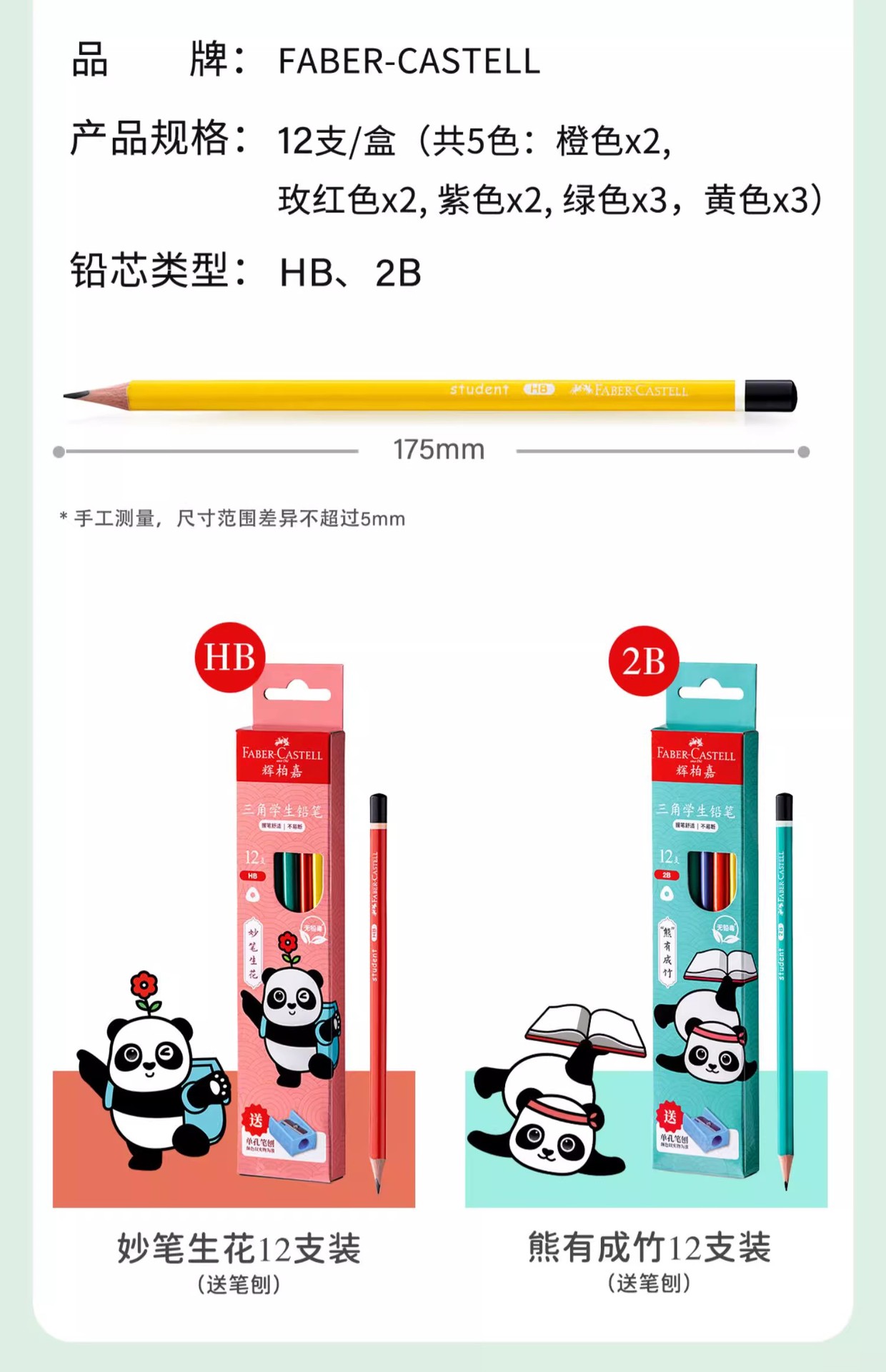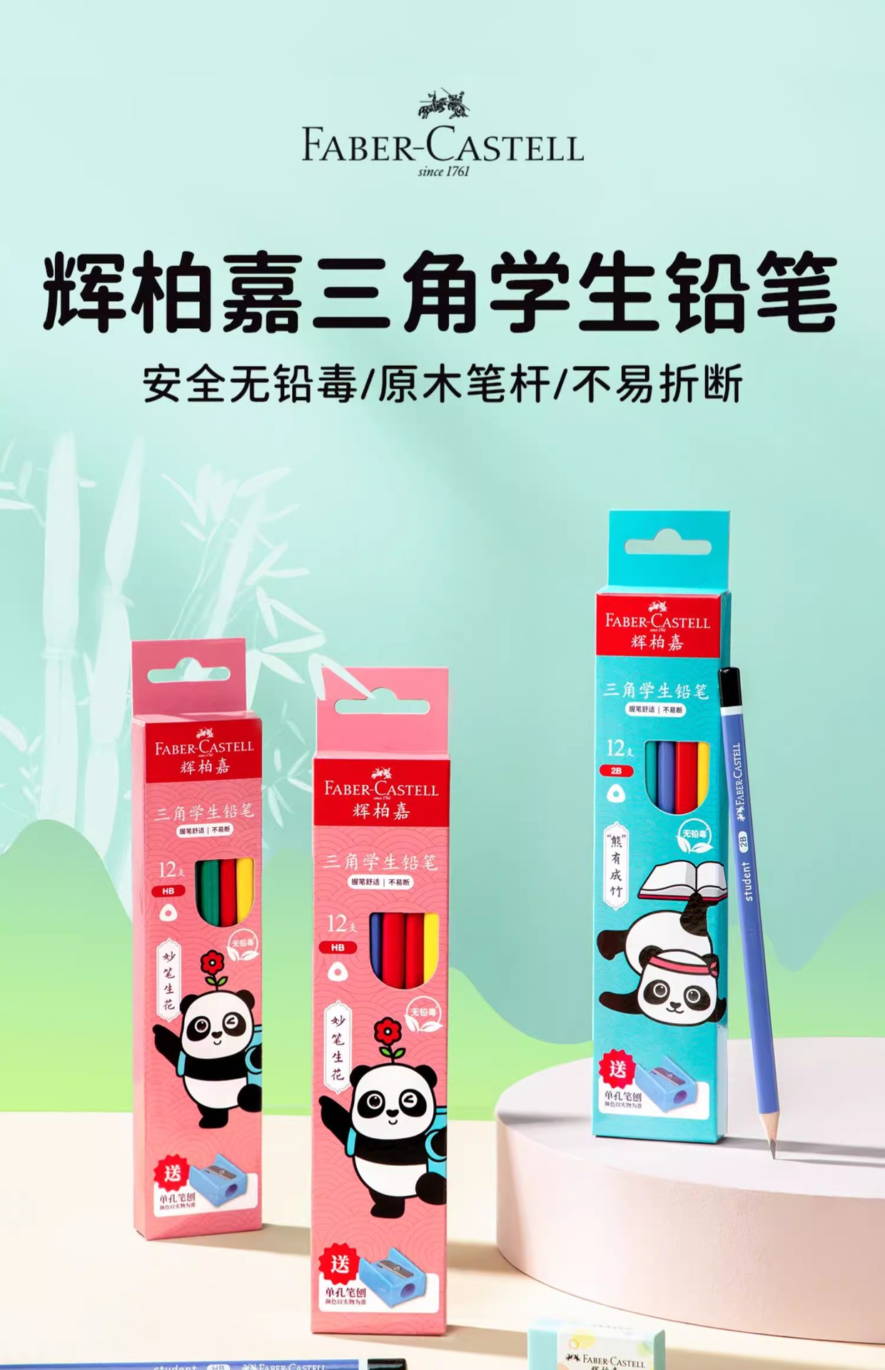[Nuevo] Faber-Jia triángulo estudiante lápiz HB 2B 12 color Caja nacional moda Panda lápiz escritura