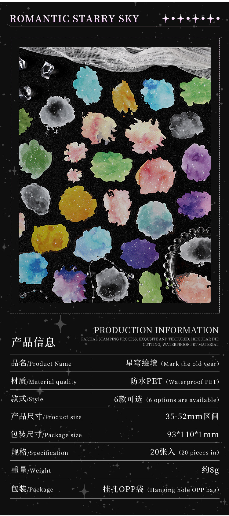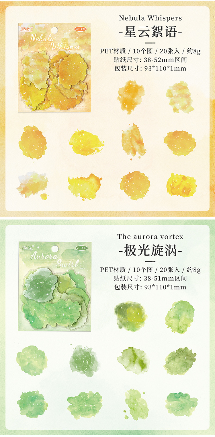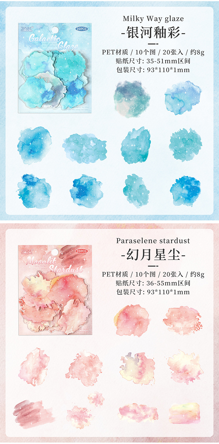 | Colores | 1 Nebulosa,2 Vórtice aurora,3 ondas en el espacio profundo,4 Polvo de estrellas de luna mágica,5 esmalte galáctico,6 pista de estrellas |