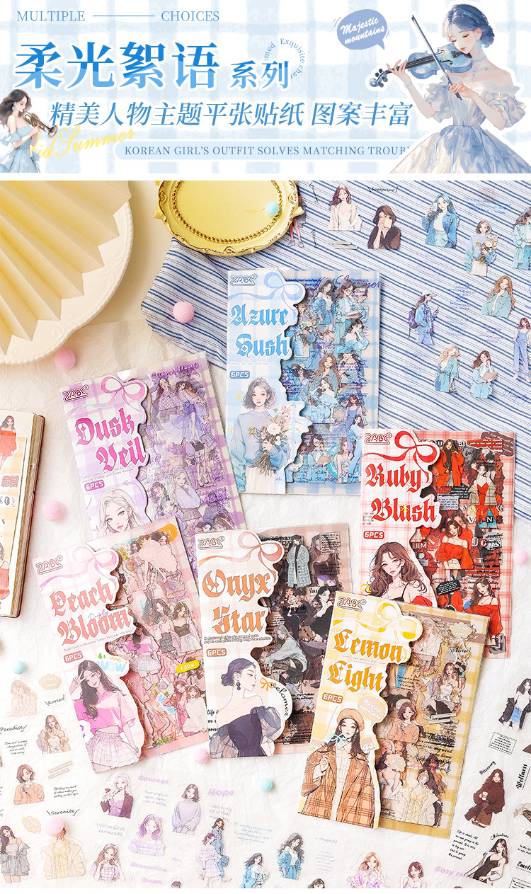 | Colores | 1 mente escarlata,2 La brisa del mar,3 La miel de la luz del sol,4 pensamientos,5 Charla de hilo nocturno,6 fragmentos de polvo de estrellas |