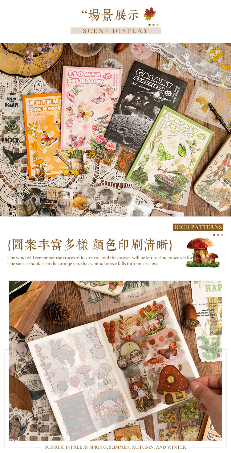 | Colores | 1 Estrella galáctica,2 Bosque de fantasía,3 reflejo de espejo de flores,4 flores de otoño Jingyi |