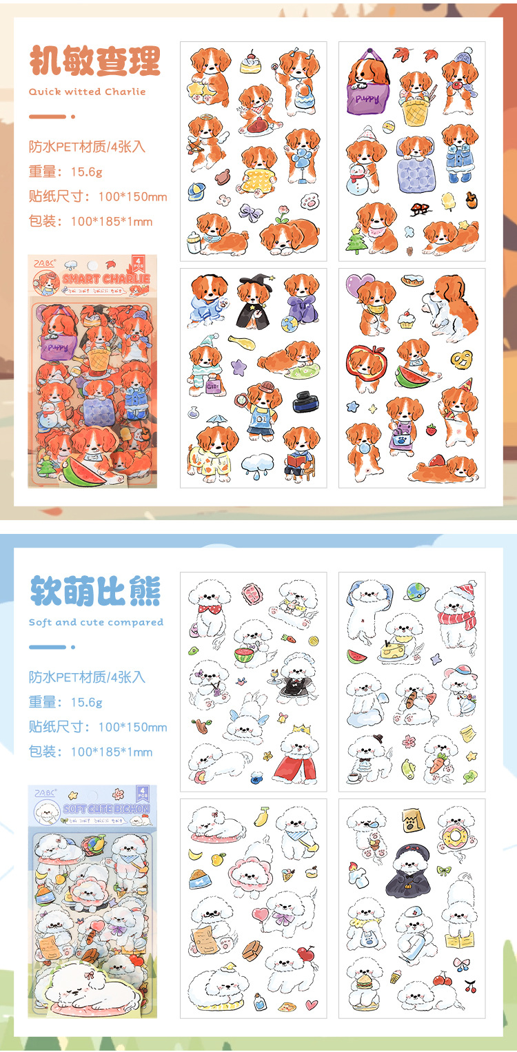| Colores | 1 Bichon suave y lindo,2 Charlie alerta,3 Pastor fronterizo abierto,4 Cogi de cadera,5 Cura Shiba Inu,6 salchicha de pierna corta |