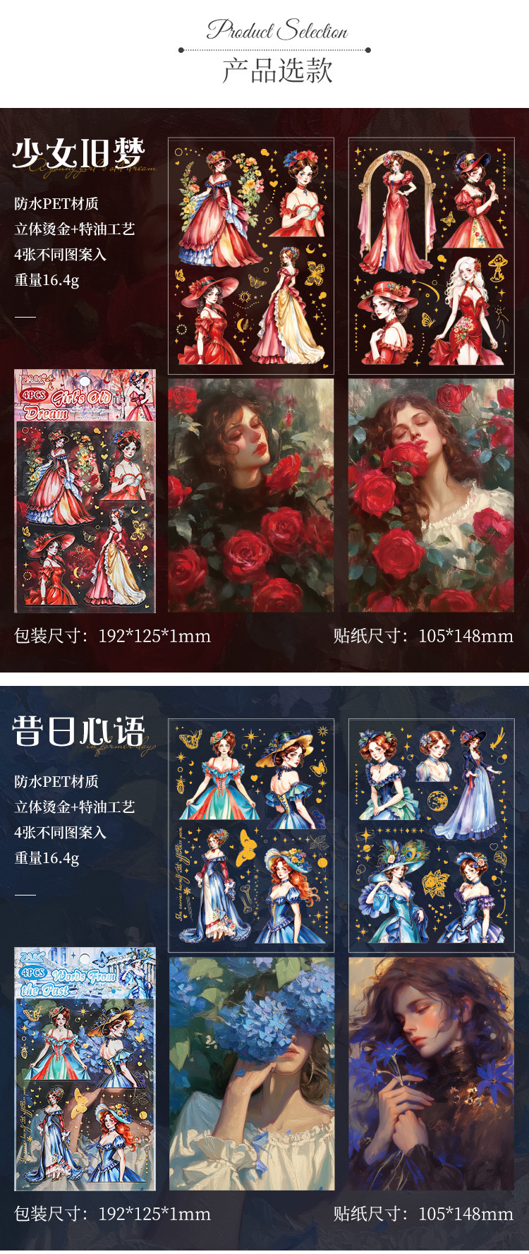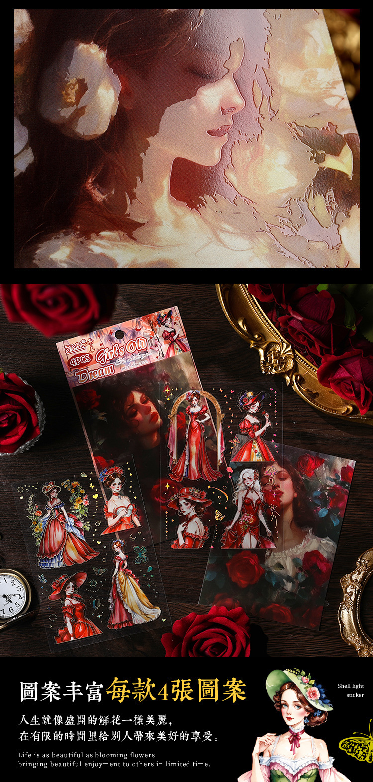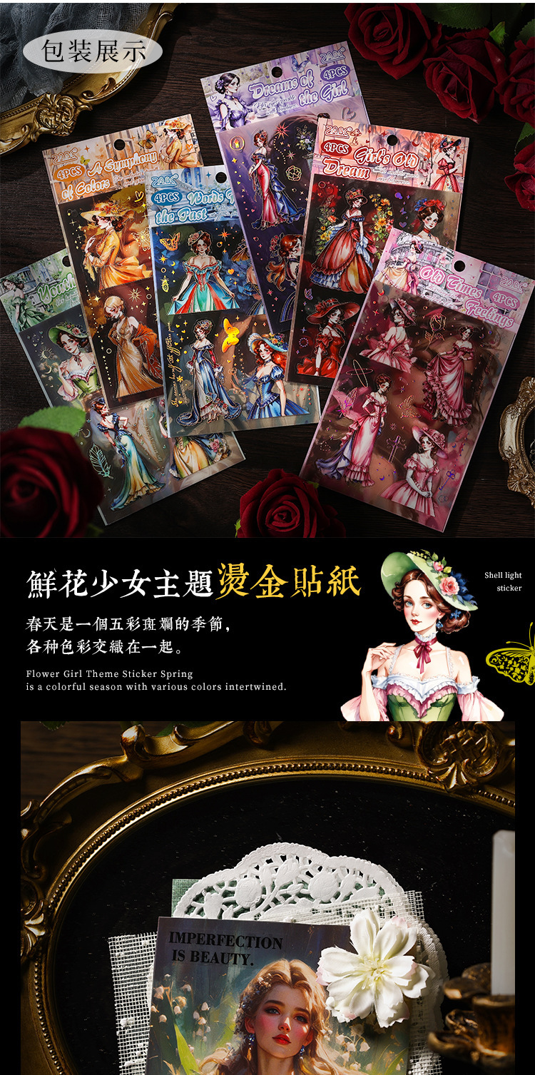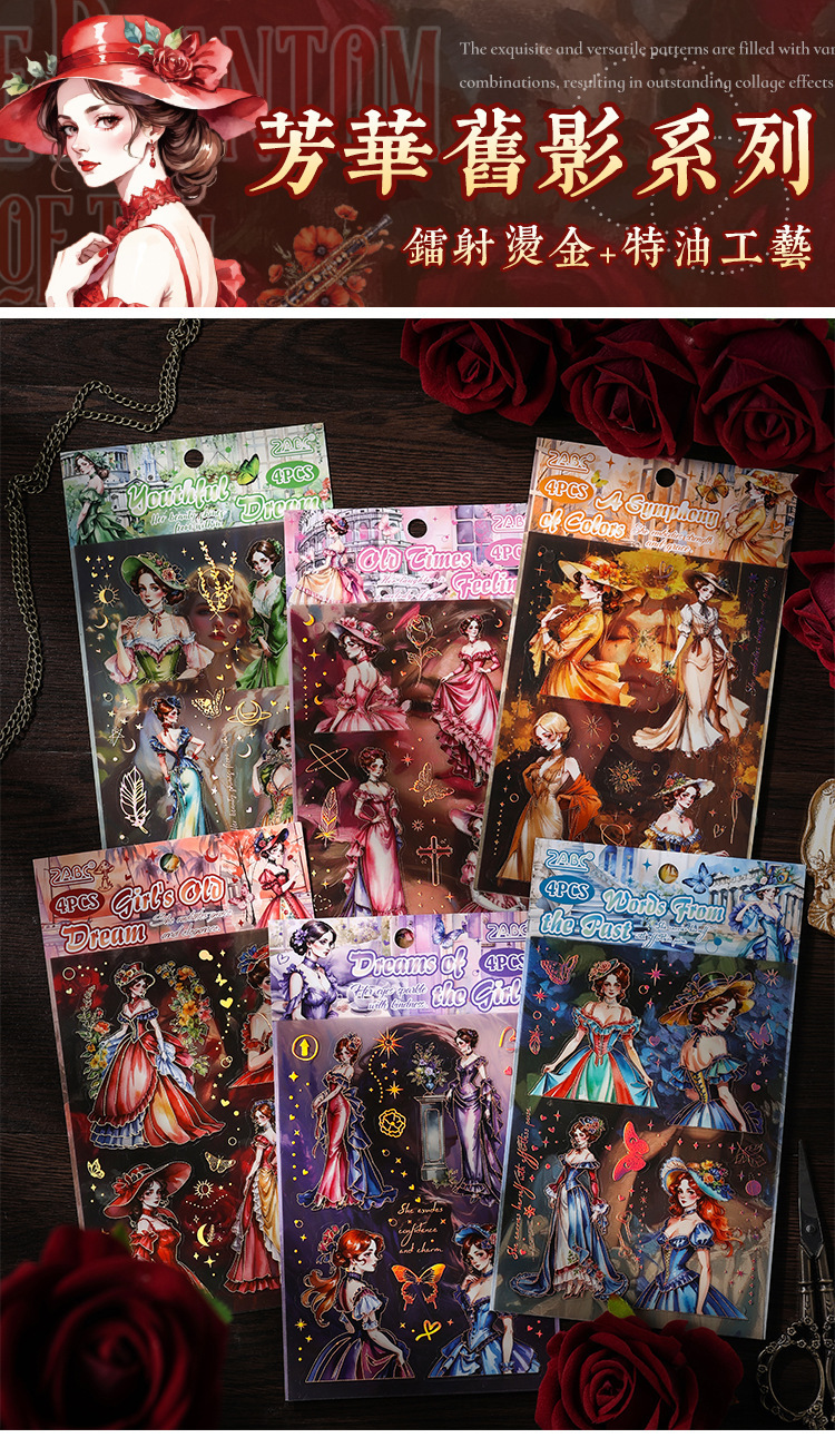 | Color | 1 sentimientos de antaño, 2 sueños de niñas, 3 sueños de boudoir, 4 palabras de corazón de antaño, 5 sueños de boudoir juvenil, 6 años de fantasía |