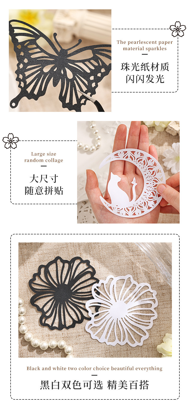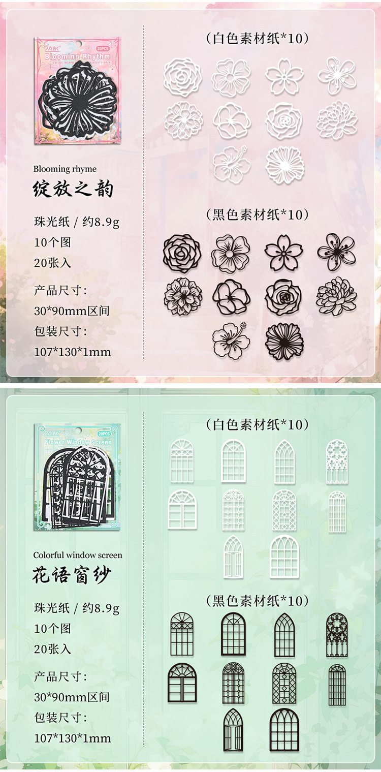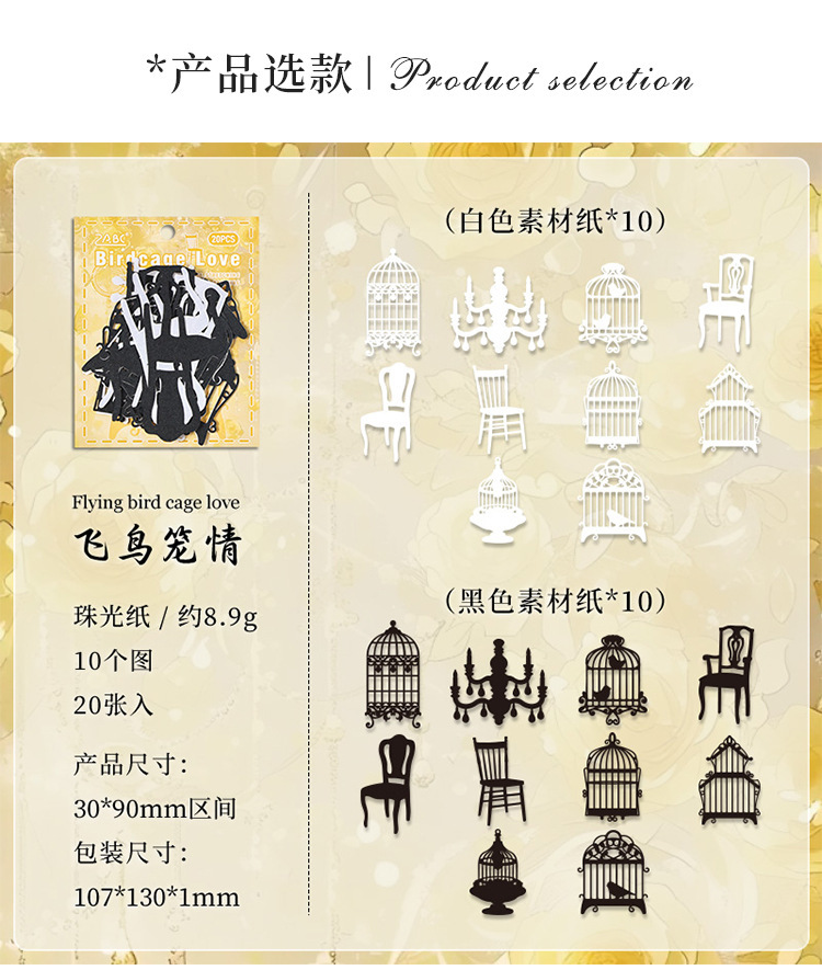 | Color | 1 sombra de mariposa entre flores, 2 encanto de floración, 3 sueños persiguen la luna, 4 estrellas, 5 jaulas de pájaros, 6 pantallas de ventana de Huayu |